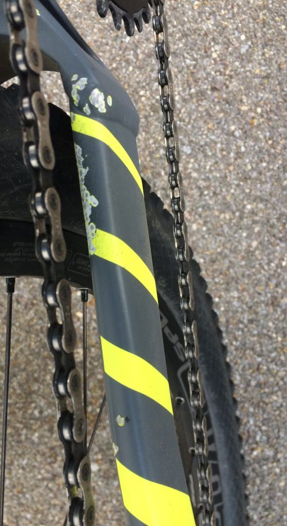 Kleiner Makel - am Hinterbau hat es ein paar Lackschäden (siehe Bilder) - denke durch Kette und Steinschlag verursacht.