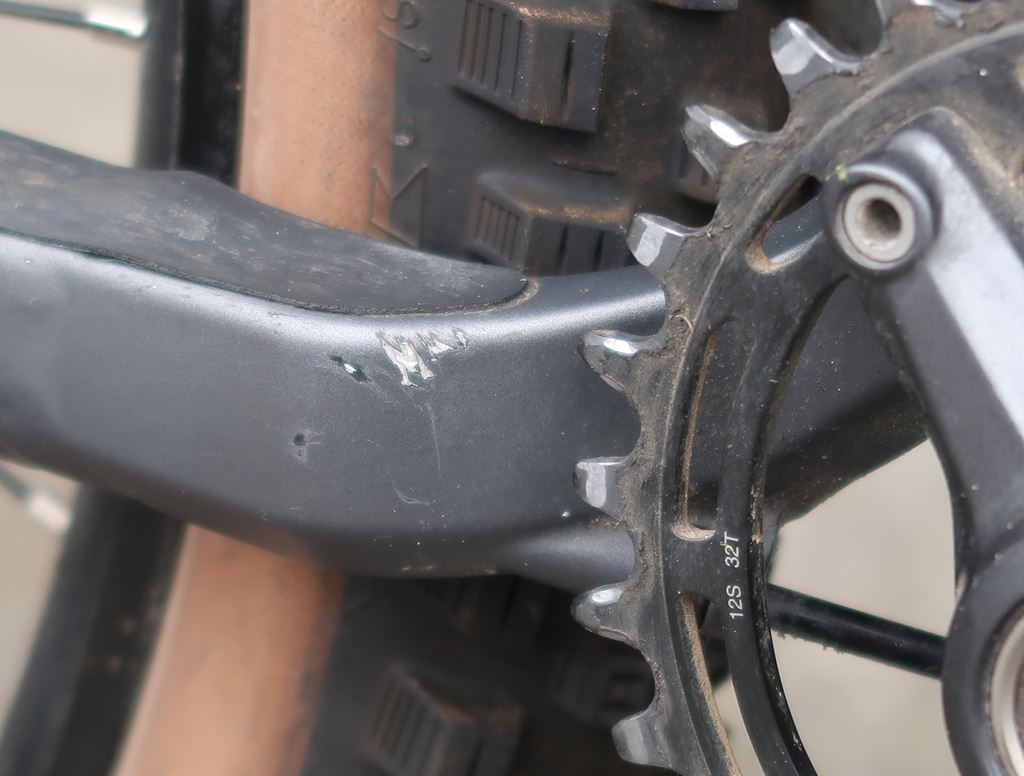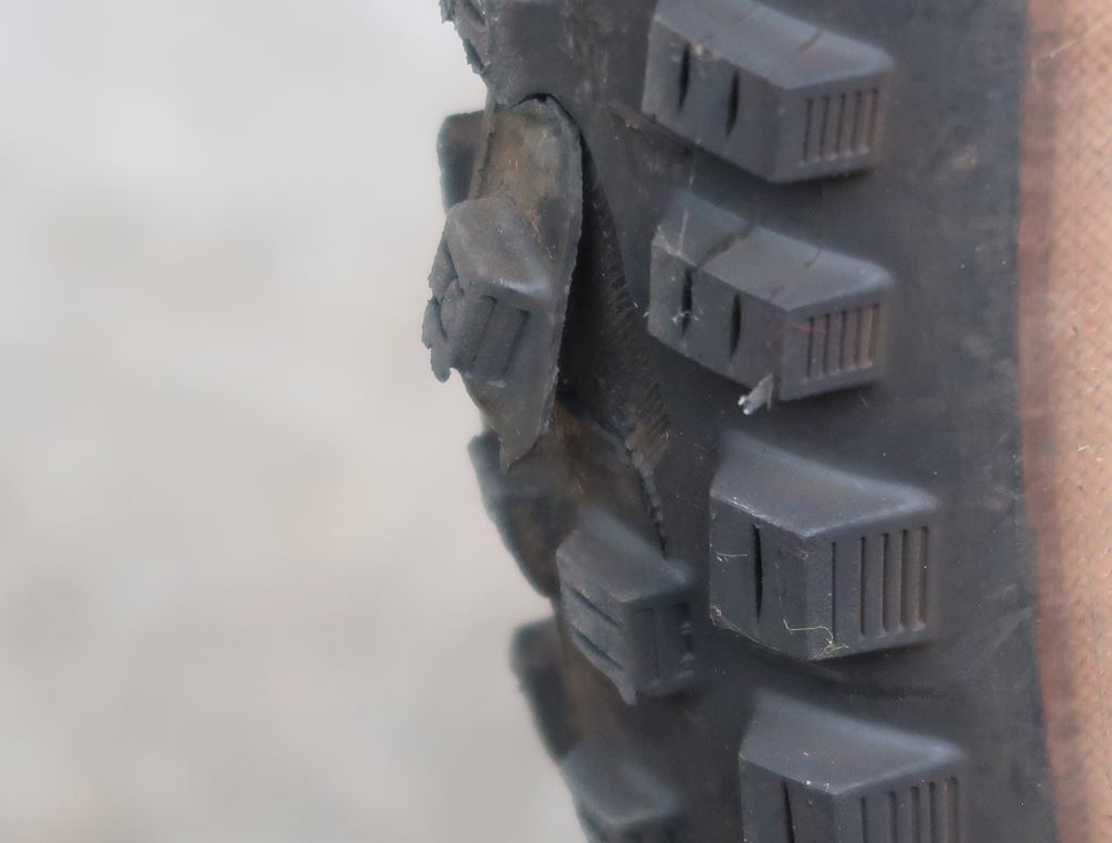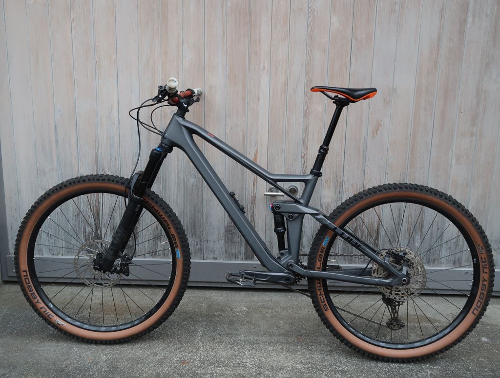 -Reifen: die sind wohl etwas spröde geworden im Laufe der Zeit. Beim hinteren Pneu hat sich ein Stollen gelöst, mindestens dieser Reifen sollte gewechselt werden. Gegen einen Aufpreis von 200.- verkaufe ich das Bike mit neuen Reifen (Schwalbe nobby nic in schwarz).