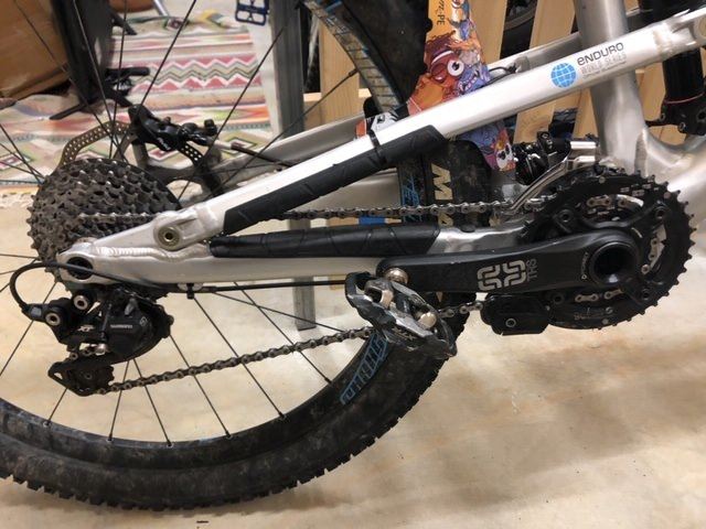 Pedale sind von Shimano Klick XTR, können aber auch abgebaut werden.