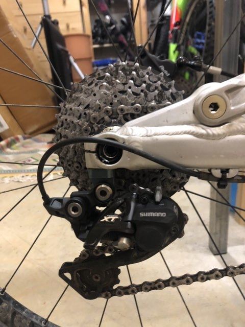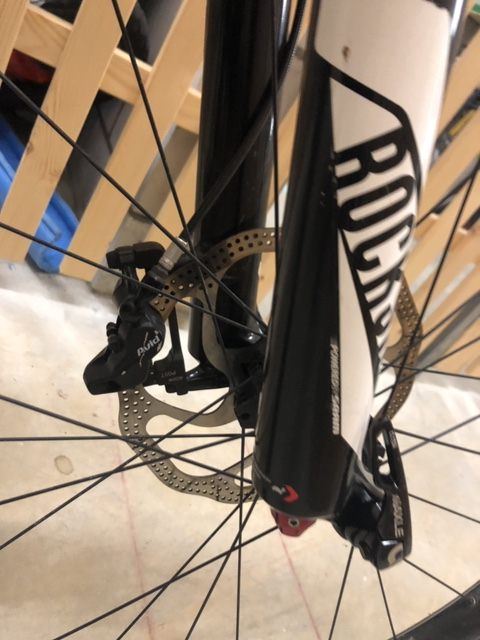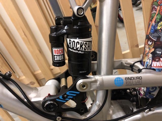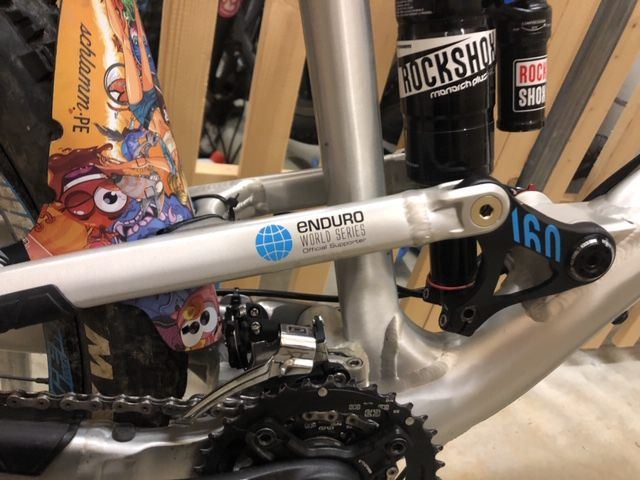 Es ist ein M Rahmen (ich bin 179cm Gross). Es hat ein paar oberflächliche Lackkratzer, keine Fissuren oder Dellen. Mittlerweile ist ein Rock Show Monarch und eine Rock Show Pike verbaut, welche optimale Bedingungen ermöglichen für Uphill und Downhill. Der Hebel für den Umwerfer klemmt etwas, Werfer und Schaltwerk Funktionieren. Bremsbeläge wurden letztes Jahr gewechselt.