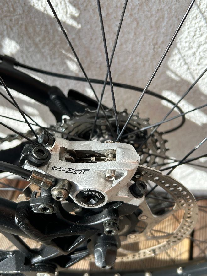 Wenig benutztes Unisex-Bike, immer im Keller eingestellt, schöner und guter Zustand, Rahmengrösse M, Shimano Deore XT Komponenten, Swiss XR 4.1d Felgen, Schwalbe Bereifung 26x2.25, Bremsen ok., Sattel ist leicht beschädigt aber funktionstüchtig, perfekt für alle, die ein leichtes, wendiges und zuverlässiges Mountainbike suchen! Verkaufspreis CHF 230.00