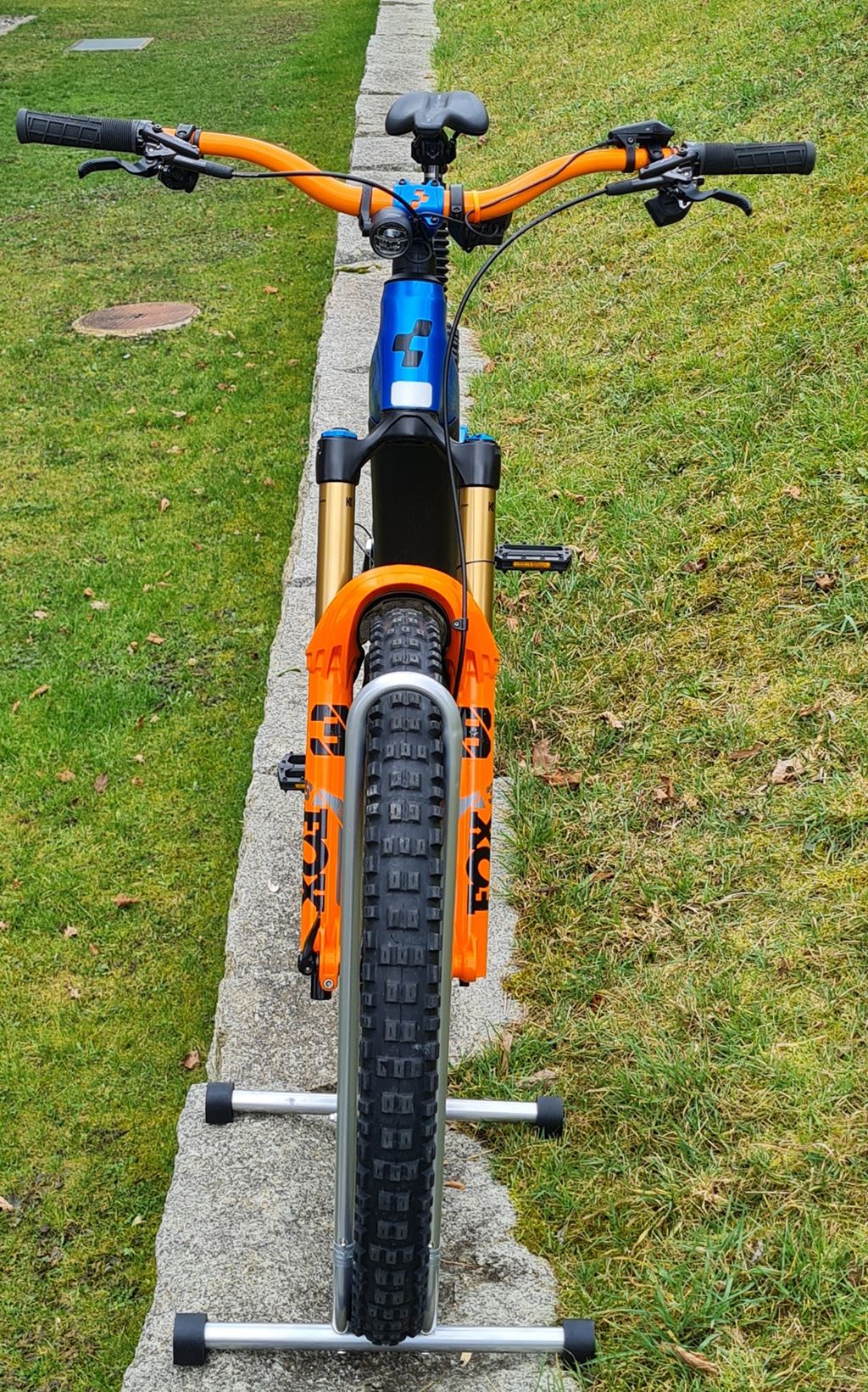 • Lenker Chromag FU 50, 31,8 mm (in orange umlackiert), Breite 800 mm, Rise 40mm.