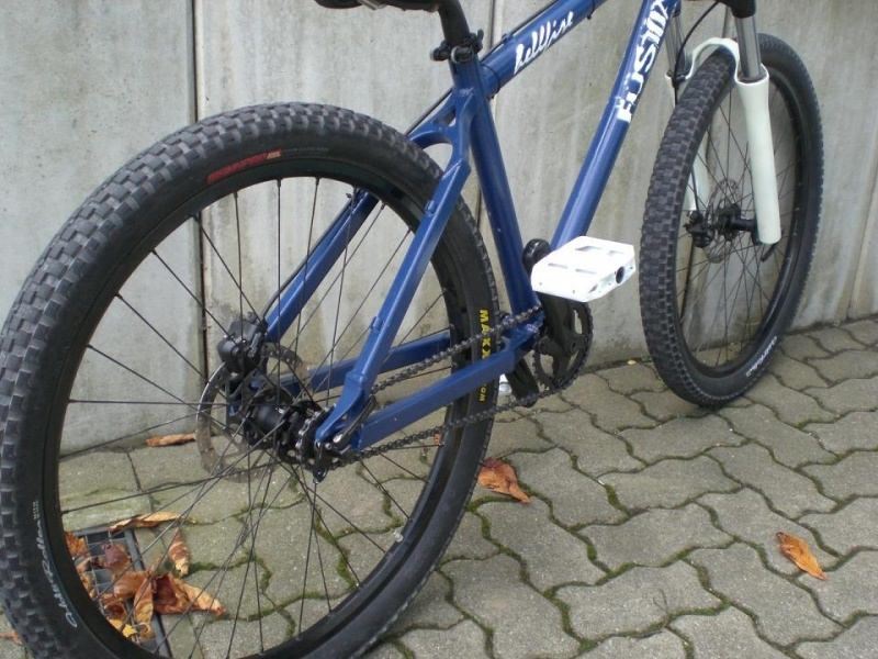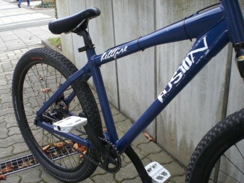 Gabel: DJ1 Felgen: Mavic Bremsen: Deore Lenker/Sattelstütze: Ritchey Innenlager: FSA DH Lack und Schriftzug ist selbstgemacht, da mir das Design von Fusion nich gefallen hat. Lenker, Pedale und Gabel ist auch selbst lackiert.