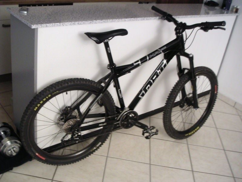 rux gabel 130 mm,ringel nabensatz,double track felgen,vp pedalen,hayes stroker bremsen,cmp kurbeln,reifen maxis minion usw usw...eigentlich ist nur noch der hai rahmen original ^^