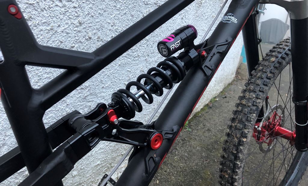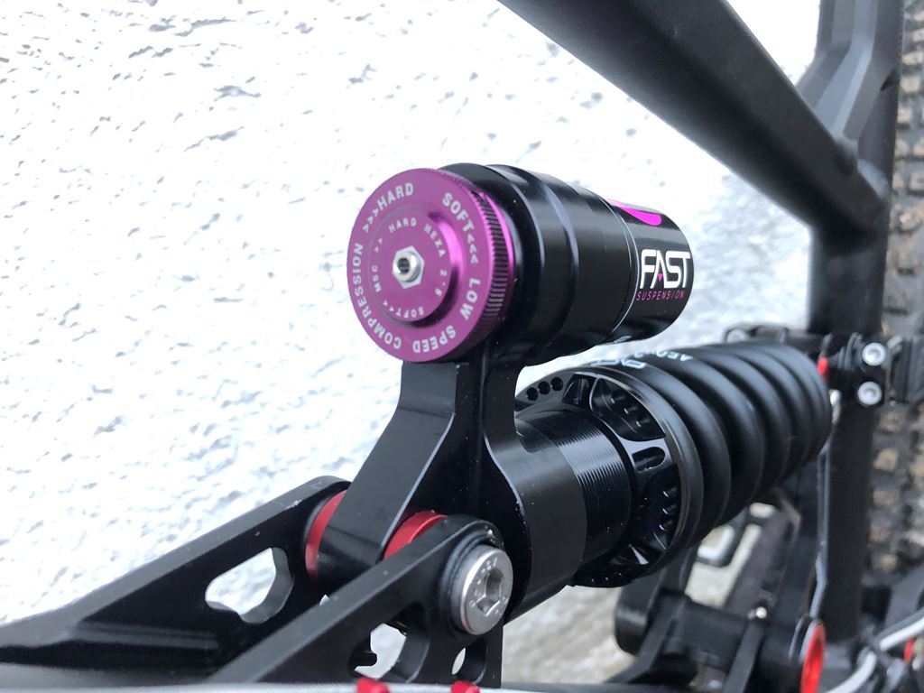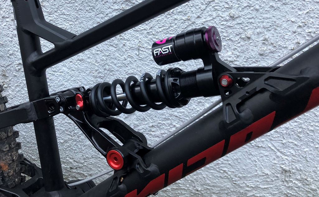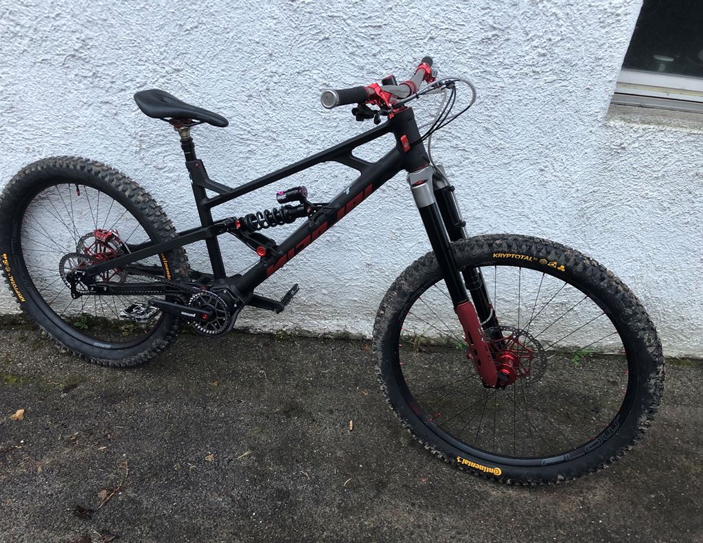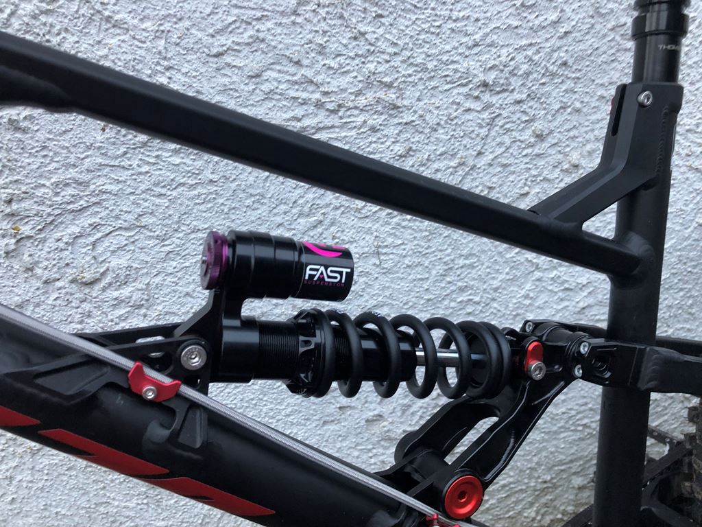 Gabel Stanctionguards & Details, Bremsadapter (v&h), Ventildetails, Dämpferdetails, SingleSpeed Kit & Hope Matchmaker rot eloxiert.