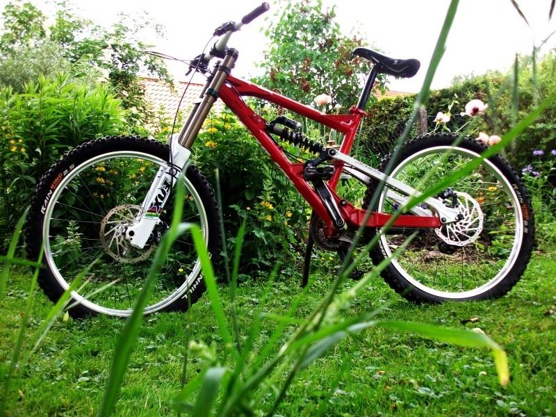 Rahmen: Nicolai ion ST gabel : Fox 40 Dämpfer: DHX 5.0 Bremsen: Shimano Saint 2009 Laufräder: cole massiv DH team isseu Reifen: Continental rain king Kurbel: Holzfeller Lenker: reverse flibar xxl und diverse kleinteile ;)