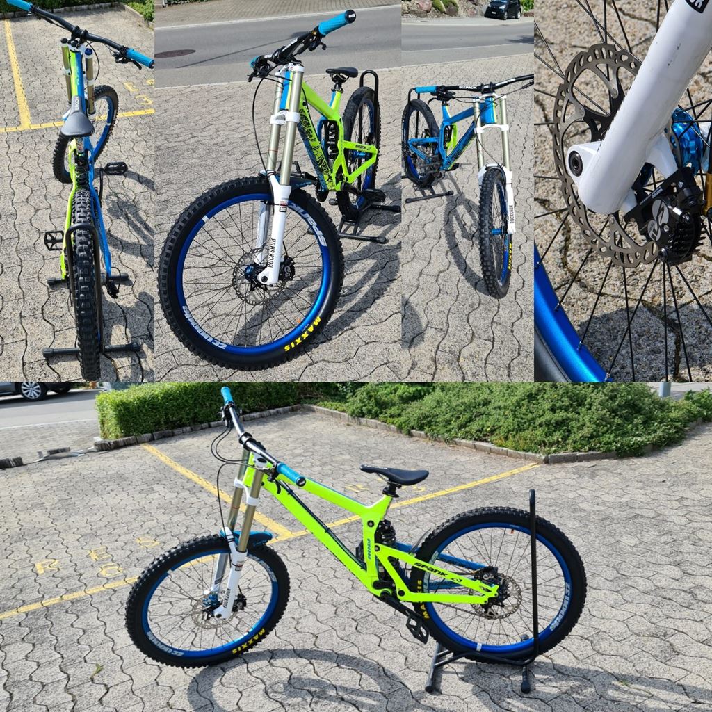 Neue Teile: Spank SPOON32 Laufrädersatz (v/h) / Shimano Saint Scheibenbremsen (v/h) / SWISSSTOP Rotors 203mm (v/h) / rie.sel design frame:Tape 3000 / ODI grips TROYLEE design / ERGON Saddle / Maxxis Shorty / Minion DHR II