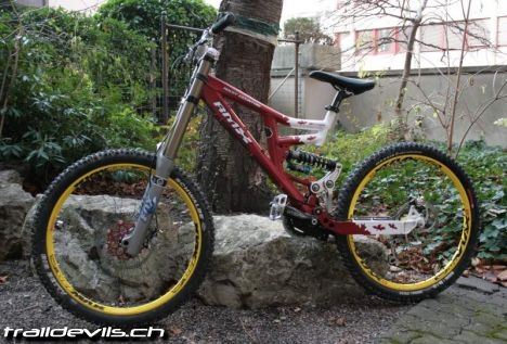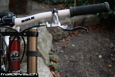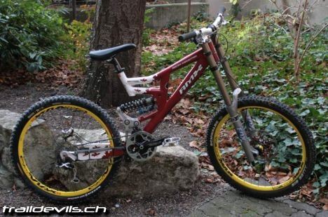 RMX "Team Farbe" Gabel: Fox 40 RC2 Bremsen: Formula Bianco 220/200 Schaltung: XTR/XT Shadow Laufrad: Dee Max Reifen: Minion Tubeless Rockring: Synchros Steuersatz: Synchros Pedalen: DMR V12 "Chrom" Sattel: DMR