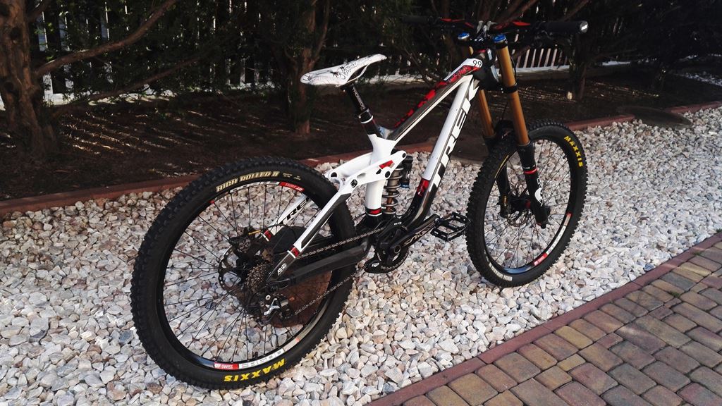 Trek Session 9.9 Carbon M, Fox DHX RC4 Factory Series Kashima + Titan, Fox 40 Hybrid Air Kashima, Shimano Saint, MRP Carbon, ODI, Selle Italia Troy Lee Designs, DMR Vault, Answer ProTaper, Hope