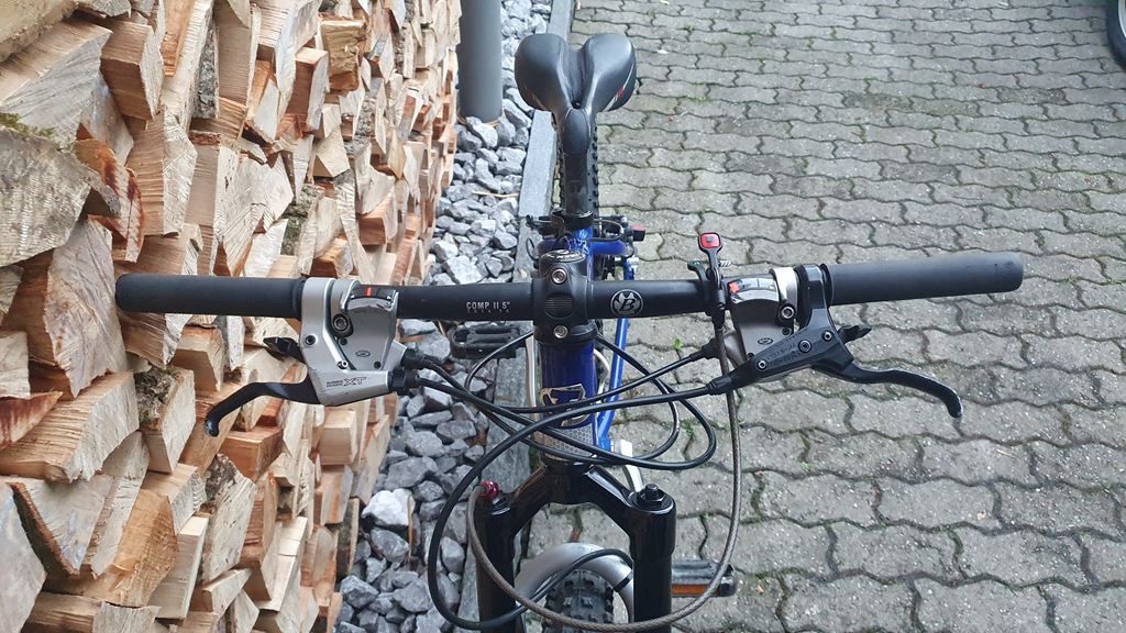 super Komponenten mit Shimano XT Schaltung 3x9 und Tektro Scheibenbremse vorne