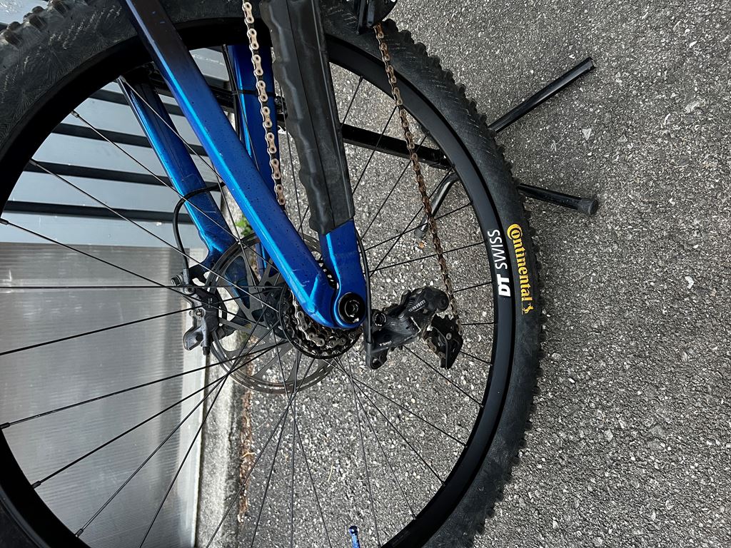 Jedes Jahr (also zwei mal) bekam das Bike komplett neue Lager und diverse Verschleissmaterialien wie Bremsbeläge, Pneus, Griffe, Kette, Ritzel und Wechsler wurden einmal oder mehrmals ausgetauscht.