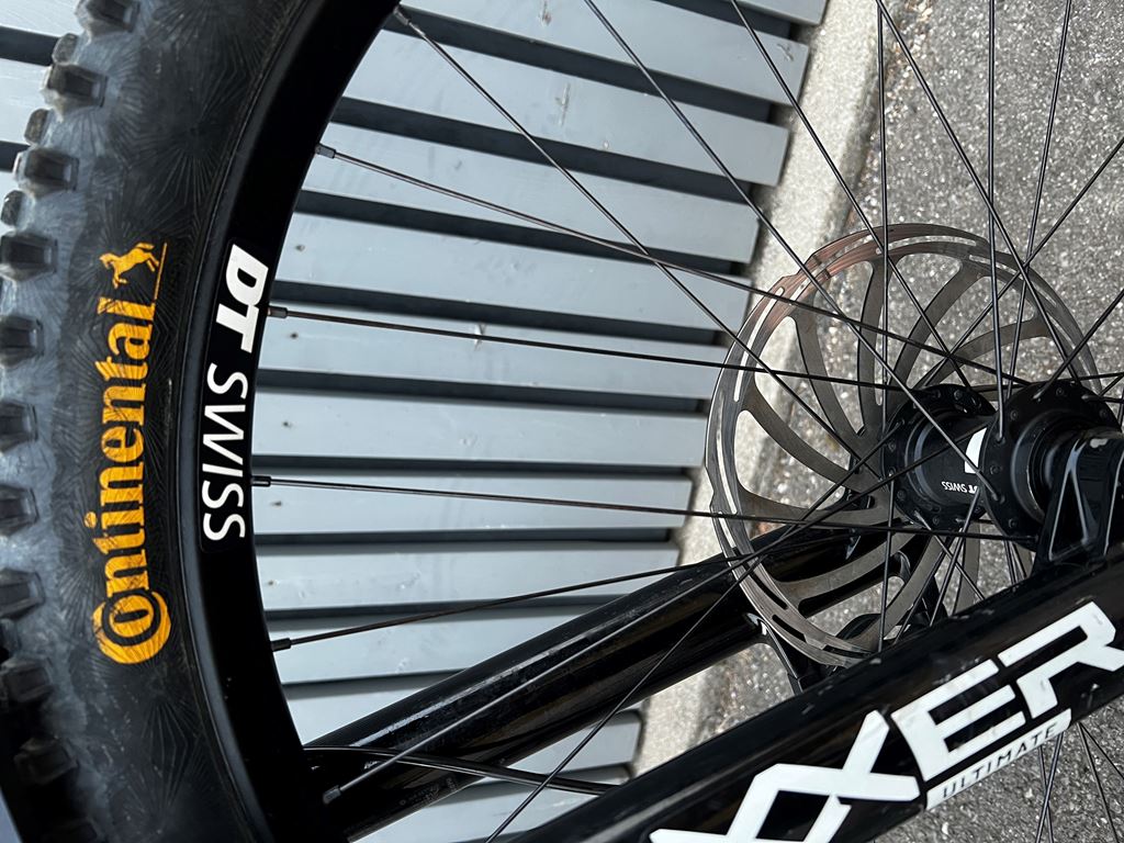 - Auf Anfrage und einen kleinen Aufpreis gibt es noch einen kompletten zweiten Radsatz mit Maxxis Wet Scream Schlammpneus auf Bontraeger Felgen