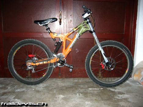 Wheeler digger dh Mod. 2003, Shiver DC 2003, Truvativ Kurbel, Lenker + Vorbau Race Face Diabolos, Grim. Syst 17, Azonic love seat, mavic 321, hügi fr Naben, Point 3.0, Rock Shox dh 230mm,