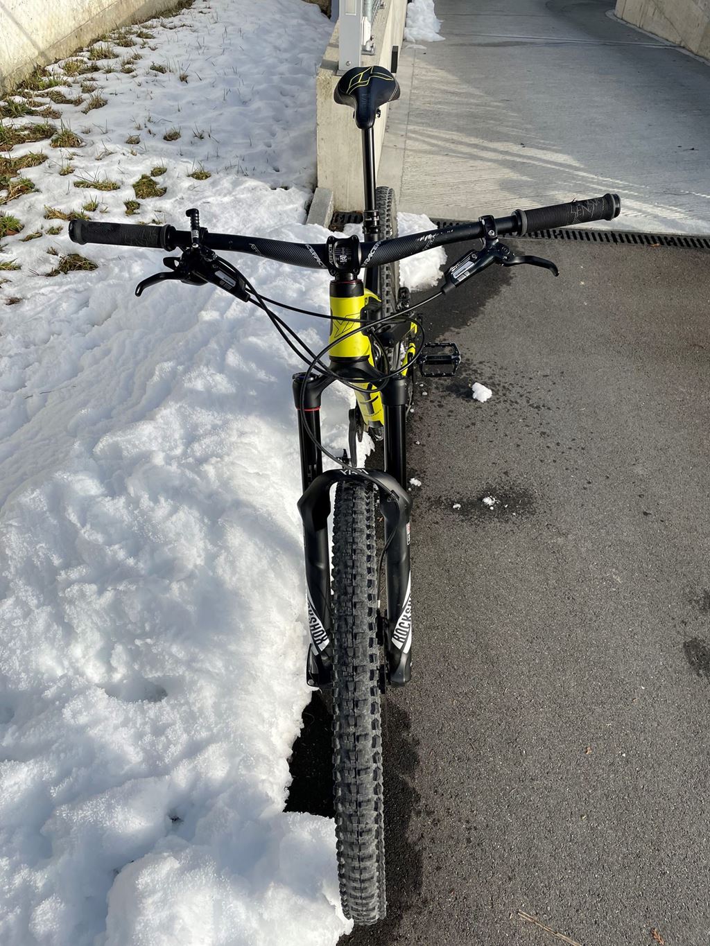 Das Bike ist in einem sehr guten Zustand. Insbesondere deswegen, da das Bike (unglücklicherweise) ausschliesslich auf Wald- und Asphaltwegen benutzt wurde. Das Bike war leider nie im Park oder in den Bergen. Der Besitzer, ein Freund von mir, ist damit lediglich 1x gestürzt, wodurch der Lenker leicht verkratzt ist.
