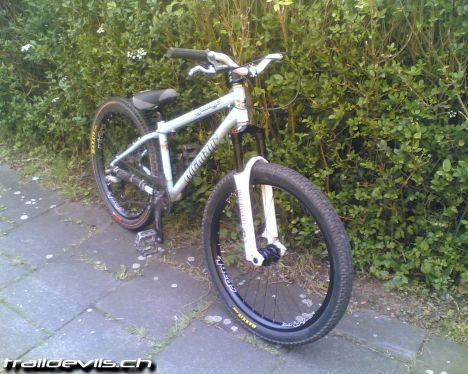 Rahmen: Orange Hitman; Gabel: MZ DJ1 06; Kurbeln: Race Face Evolve DH; Steuersatz: Race Face Diabolus; VR-Nabe: MZ QR20; HR-Nabe: Dt Swiss Cerit; Felgen: Spank Stiffy 26\"; Bremsen: Hayes Mag (VR-Adapter fehlt zzt.); Sattel: Brave Seatgrab; Reifen: Maxxis Holy Roller und Lopes Bling Bling