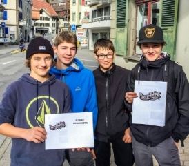 Pumptrack Frutigen vlnr. Mirko Bach (Jungling), Michael Schranz (michschranzz), Joni Trummer, Matteo Ramu (Springsteen).
