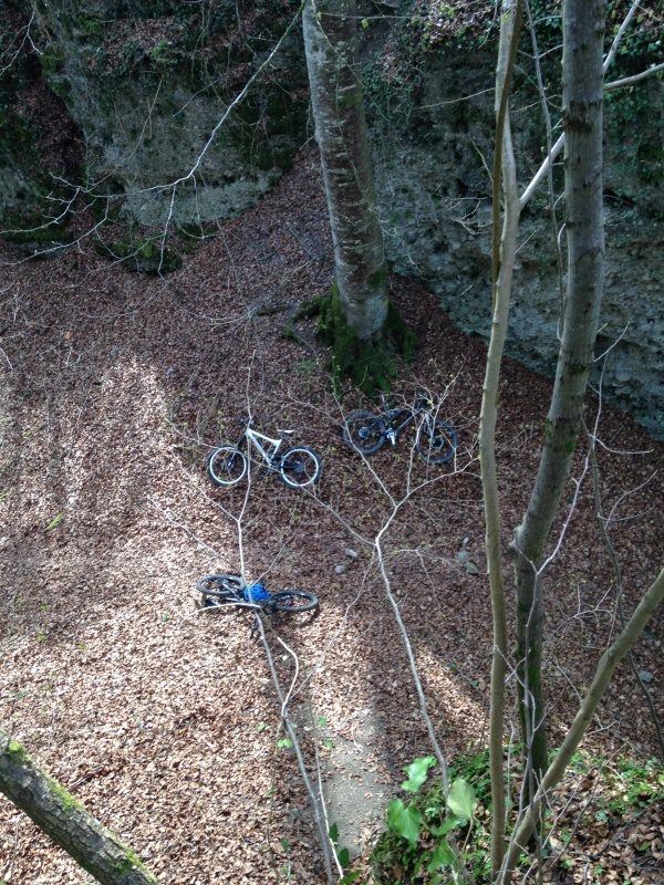 Tüfelscheller<br>3 Bikes im Laub (Transalpes, Santa Cruz & Commencal)