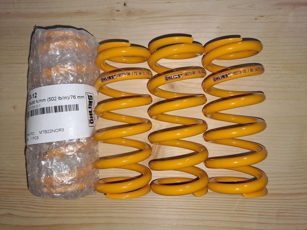 - Diverse Federn für Öhlins TTX22M Dämpfer. Die Federn sind alle neuwertig, habe die passende Feder nun gefunden. 18073 Diese ÖHLINS Stahlfedern passen an Deinen TTX 22 M Dämpfer mit 68 bis 76 mm Hub. Sie bestehen aus pulverbeschichtetem Stahl und glänzen mit niedrigem Gewicht sowie hoher Festigkeit. Die benötigte Federhärte richtet sich nach Deinem fahrfertigen Gewicht. Momentan nurnoch zwei verfügbar. 08 = 72Nm = 411 lbs 09 = 76Nm = 434 lbs Die Federn der Serie 18073-01 bis -16 sind geeignet für folgende hydraulische Stoßdämpfer TTX22M: Dämpfer (Einbaulänge x Hub): 222 x 70 mm (8,75 x 2,75" ), 241 x 76 mm (9,5 x 3,0" ), 225 x 70 mm, 225 x 75 mm, 250 x 70 mm, 250 x 75 mm Preis pro Stück 49.- Neupreis momentan bei 120.-