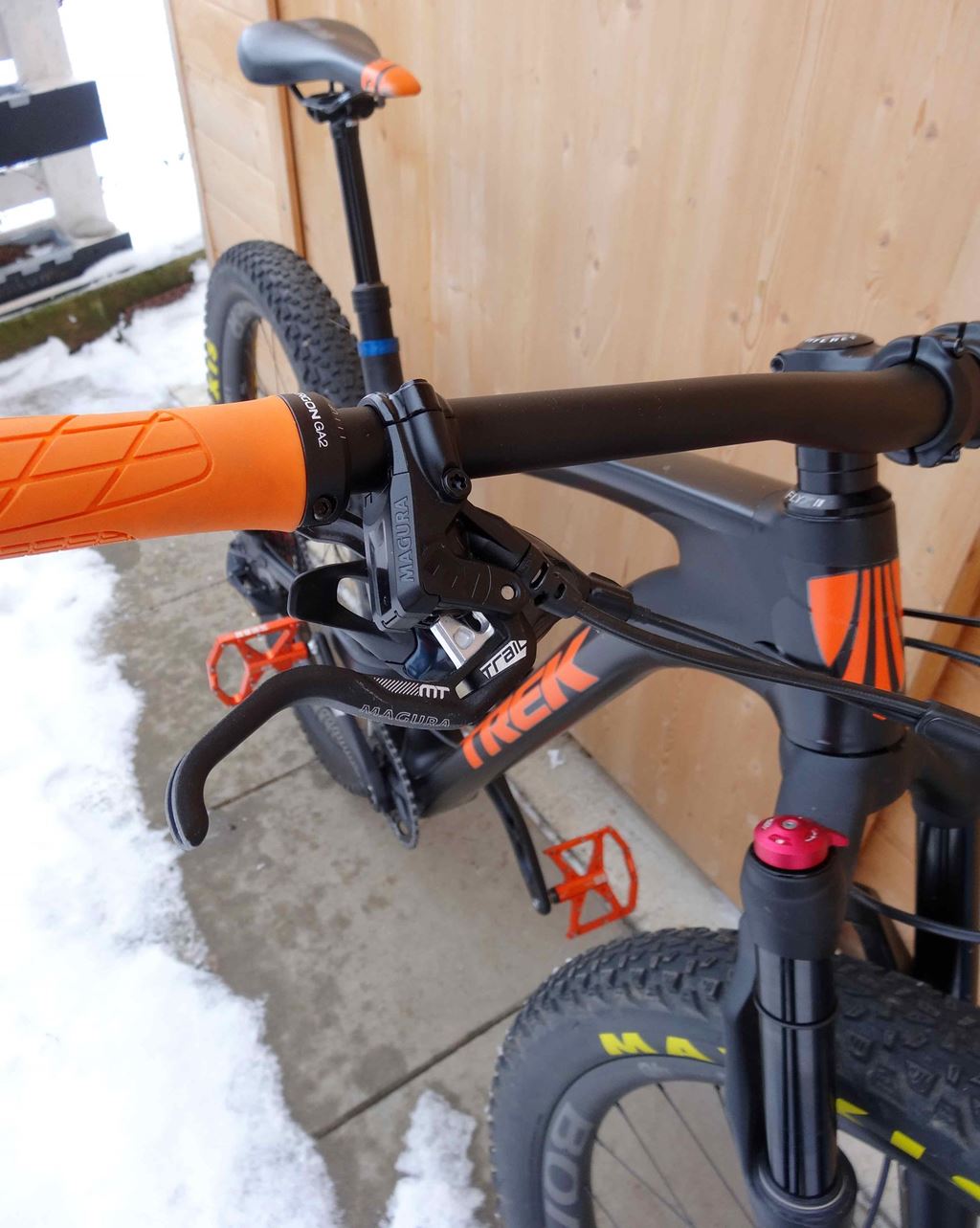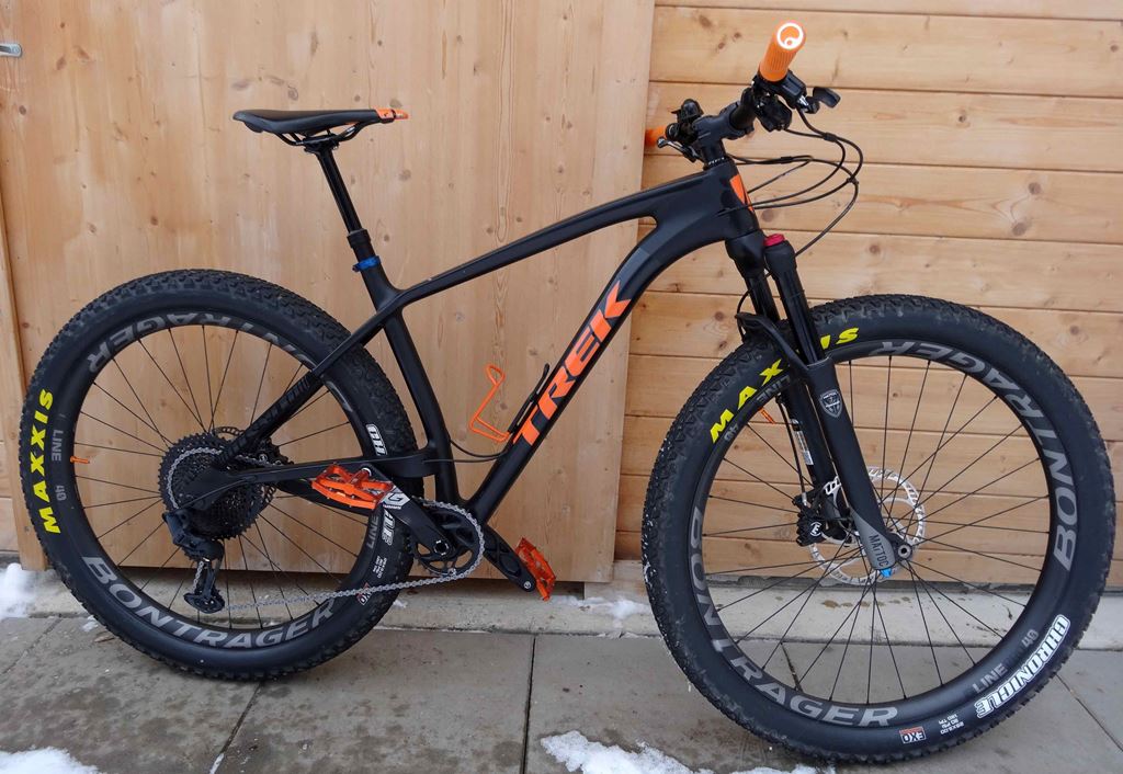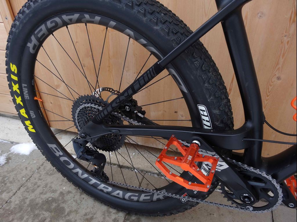 - Carbon 29er Plus Bike Kurbel: SRAM GX Eagle DUB 12-fach, 175mm, 32 Zähne Schaltwerk: SRAM GX Eagle 12-fach Shifter: SRAM GX Eagle 12-fach Kassette: SunRace CSMZ90 12-fach (11-50 Zähne) Gabel: Manitou Mattoc Bremsen: Magura MT Trail Sattelstütze: Bike Yoke Revive 125mm Sattel: Selle Italia Laufräder: Bontrager ProLine 40, Carbon Reifen: Maxxis Chronicle 29 x 3.0 (tuebless montiert) Lenker: BBB Vorbau: BBB Griffe: Ergon GA2 Pedale: Big Doc Rahmen: Carbon "NoName" (wurde vor ca.3 Jahren bei Ebay als "Trek Stache" ersteigert - die übliche Rahmennummer fehlte jedoch, weshalb ich von einer "NoName" Kopie ausgehe! Die Verabreitung des Rahmens war/ist jedoch einwandfrei und ich habe keine Mängel festgestellt) Grösse: 19" Gewicht: 12.85kg inkl. Pedale Bike ist mit Invisiv Folie abgeklept entsprechend kaum/geringste Gebrauchspuren zu erkennen. Zusätzlich ein Paar neue Bontrager XR4 Team Issue 29x3.0 Reifen (Haben gröberes Profil als die aktuell aufgezogenen). Das Bike ist ein Spassmacher, das Fahren mit 29+ ein Erlebnis mit so manchem Aha-Effekt, die leichten Carbonräder lassen einem über die Trails jagen. Aufgrund Knieproblemen leider bisher viel zuwenig gebraucht (max. 300km). Deshalb und aufgrund Platzbedürfnis zu verkaufen... Bei Interesse darf das Bike gerne besichtigt/probegefahren werden.