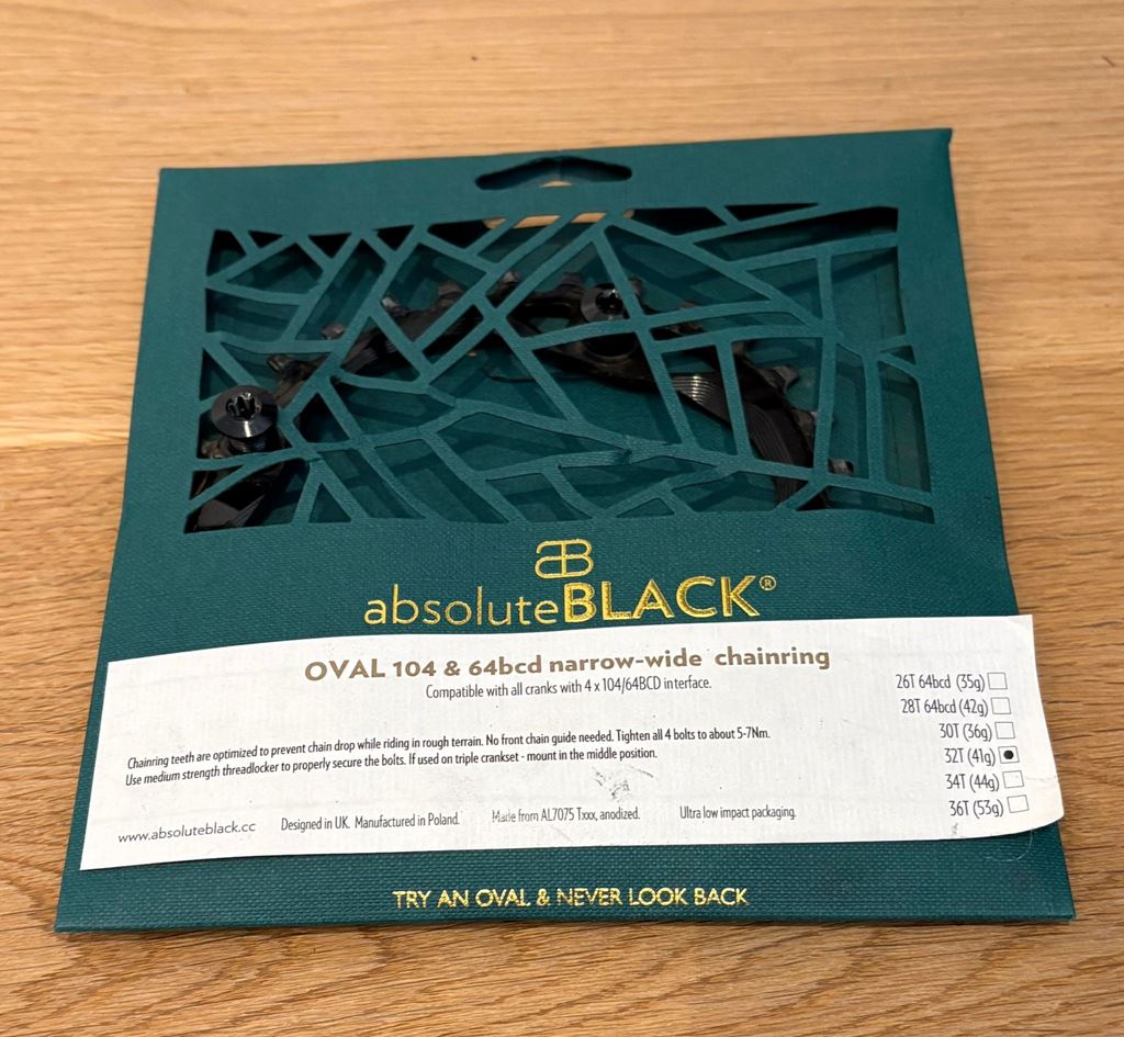 - noch gutes, gebrauchtes absoluteBLACK oval 32Z. (4x 104 & 64bcd) Preis und Porto (+7.50) verhandelbar.
