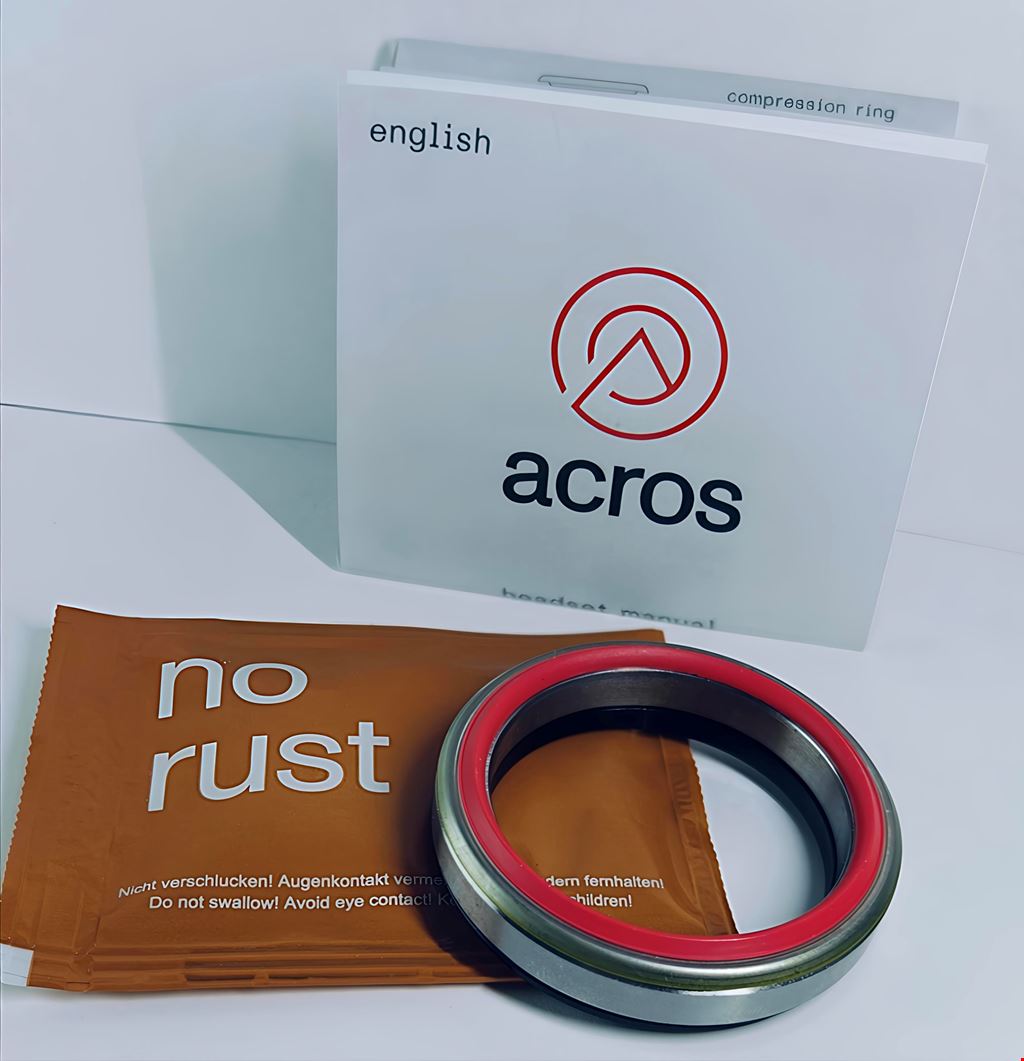 - Das Set beinhaltet den Steuersatz für unten, oben und den Deckel. Acros IS52 Steuersatz Unterteil Lieferumfang: - Unteres is52 Steuersatzlager - IPS Dichtung - Gabelkonus Technische Daten: - Innendurchmesser Steuerrohr (ID): 52 mm - Kugellager: 52x40x7 - 45° /45° - Gabelschaftdurchmesser (SD): 1.5" (40 mm) - Einpresstiefe (D): 8,3 mm Acros IS52 Steuersatz Oberteil für ICR (interne Kabelführung) Lieferumfang: - Oberes is52 Steuersatzlager - IPS Dichtung - ICR Zentrierring Technische Daten: - Innendurchmesser Steuerrohr (ID): 52 mm - Kugellager: 52x42x7 - 45° /45° - Gabelschaftdurchmesser (SD): 1 1/8" (28,6 mm) - Einpresstiefe (D): 8,3 mm Acros IS52 Steuersatzdeckel intergrierte Kabelführung Lieferumfang: - Steuersatzdeckel aus glasfaserverstärktem Kunststoff - Gummiplugs Technische Daten: - Innendurchmesser: 28,6 mm - Aussendurchmesser: 56 mm - Bauhöhe: 9mm - Kabel/Leitungsdurchmesser: max. 6 mm - Kabeldurchführungsanzahl: bis zu 6 Stück Lieferumfang: - Acros IS52 Steuersatz Unterteil - Acros IS52 Steuersatz Oberteil für ICR (interne Kabelführung) - Acros IS52 Steuersatzdeckel intergrierte Kabelführung Versandkosten werden vom Käufer getragen (CHF ~9.00).