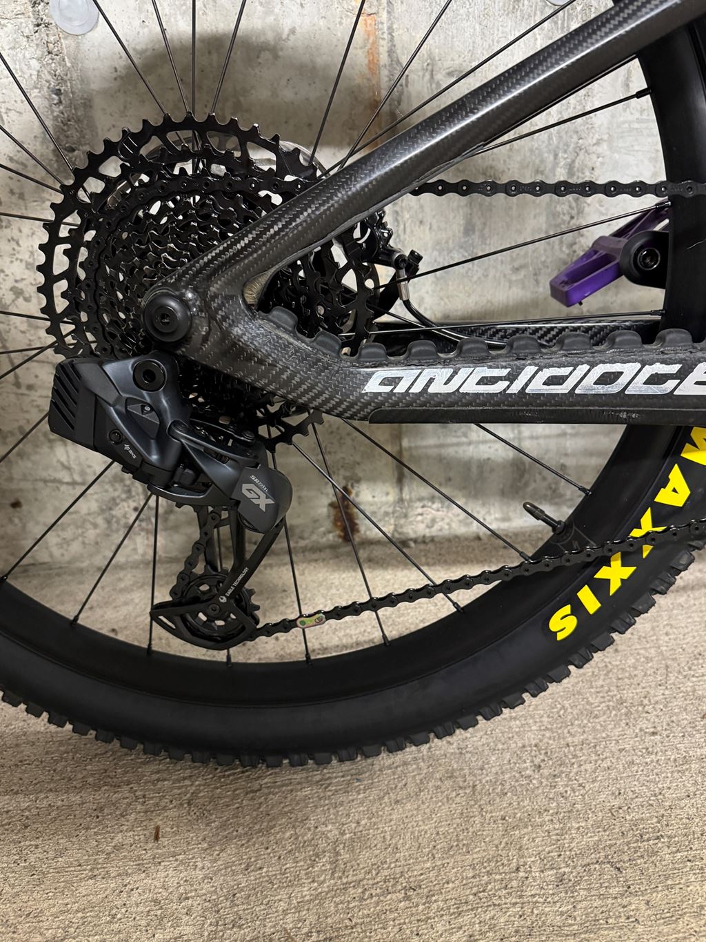 - Ich verkaufe meine Enduro Maschine von Antidote in Grösse L. Hat normale Gebrauchsspuren, top gepflegt und regelmässig geserviced. !!! Lebenslange Garantie auf den Rahmen !!!. Der Rahmen hat ein Öhlins TTX22 Coil Dämpfer verbaut. Rahmenfederweg beträgt 150mm also ein Trail/Enduro Bike. Der Schriftzug wurde mit einer Chrom Folierung überzogen. Das Bike wird verkauft da ich Platz schaffen muss. Ausstattung: Rahmen: Carbon Dämpfer: Öhlins TTX22 Coil, 502 Feder 150mm Gabel: Formula Selva S, 160mm Kurbel: Truvativ Descendant carbon, neu Kassette: Sram PG1239, 10-50T Schaltwerk: Sram GX AXS eagle, neu Trigger: Sram AXS Sattelstütze: Sram AXS 150mm Sattel: Deity Speedtrap Vorbau: Deity Copperhead Lenker: Deity Carbonlenker Bremsanlage: Shigura, XT Bremshebel mit MT7 Bremszangen Radsatz: Specialized mullet vo29, hi27.5, neu Reifen: Maxxis High Roller 2, neu Das Bike kommt direkt ab kleinem Service, Bremsen entlüftet, Schaltung neu eingestellt. Muss in Teufen abgeholt werden oder nach Vereinbarung ist evt. auch eine Lieferung möglich. Preis verhandelbar.
