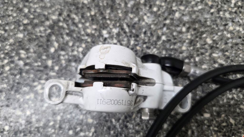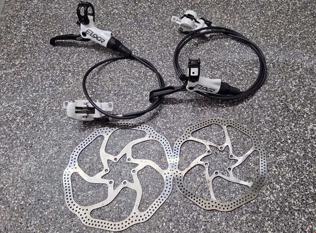 - Älteres Bremsenset aber voll funktionsfähig. Mit Bremsbelägen und Scheiben (160 / 180mm). Bremsleitung vorne 68cm Bremsleitung hinten 128cm