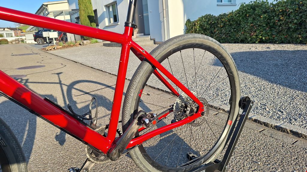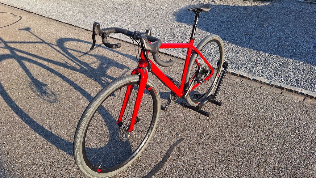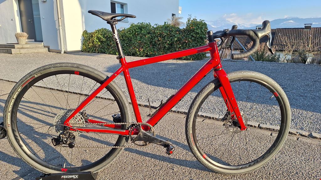 - BC Custom Gravel Adventure Rahmen: BC original Flint 28, Grösse M (170 - 180cm), rot, Jahrgang 2023, viele Anschraubpunkte, Vorbereitung für Nabendynamo, grosses Rahmendreieck für Tasche Schaltung + Antrieb: Campagnolo Ekar 13 fach, Kurbel 172.5, GT-Kassette 10-44 N3W, Kette 13 fach Bremsen: Campagnolo Ekar Bremsanlage, Galver Wave Scheiben v160mm, h140 Lenker: FSA Omega Compact - 31.8 - matt schwarz, 420mm Vorbau: FSA OS168, 31,8, schwarz matt, 110mm Sattelstütze: Deda Zero100 - 0mm Setback - 27.2 Sattel: Selle Italia SLR Boost TI Grösse: L1, Masse: 145 x 248 mm Pedale: LOOK X-Track Race Carbon Pedal - schwarz Flaschenhalter: 1x Elite Leggero Carbon Laufradsatz: Fulcrum RAPID RED 5 DB Disc Center Lock Reifen: Vittoria Terreno Zero Faltreifen, 47-622, schwarz/grau, mit Schlauch Zustand: Laufleistung 1800km, keine Stürze, top gepflegt