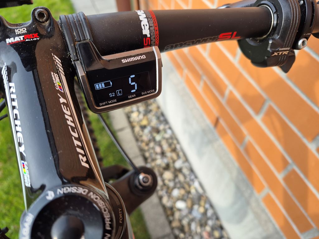- Top gepflegtes und schnelles Bergamont MGN Hardtail Bike. (Mehr Geht Nicht!!!) - Carbonrahmen Grösse L - hoch präzise 2x11 Shimano XTR DI2 elektronische Schaltung - Synchronized shifting, programmierbar (nur ein Schalthebel rechts) - 2 Schaltmodi programmierbar - Ganganzeige Kassette hinten - Shimano XTR Bremsen - Rockshox Gabel mit Fernbedienung, Servicegepflegt - Stages Powermeter Kurbel für die Leistungsmessung (links) - Schwalbe Racing Ralph Reifen (29x2.25") - Carbon Bidonhalter - Schlauchlos - Gewicht ca. 9.0 Kg - Laufleistung ca. 6000 Km - Superleichte Titan Crankbrothers Eggbeater 11 Pedale (nur 174g das Paar) Bei Fragen +41 (0)79 504 56 03 Kann auf Wunsch besichtigt werden.