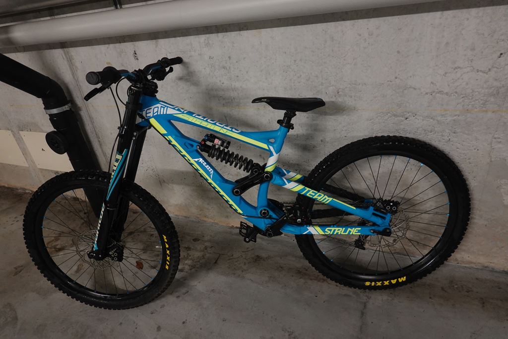 - Das Bike hat einige gebrauchsspuren und hat super dienste geleistet im Park. An der Kurbel auf der Kettenseite ist leider der Lack abgerieben. Verkaufe es da es lange herum stand und wir nicht mehr im Park fahren gehen. Die Bereifung wurde neu gemacht da die alten reifen nicht mehr gut sind. Rechnung ist auch noch vorhanden, bei interesse. Technische Daten: Rahmengrösse S Rahmen: 27.5" MTB, 6013 Aluminium Ultra Strong Rohrsatz, T4/T6, Federweg: 210 mm Gabel: Manitou Dorado Pro 27.5", 1 1/8", 200 mm, Luftfeder, IRT , Zugstufeneinstellung, Compression, 20 mm Achse Dämpfer: Rock Shox Vivid Coil R2C, Zugstufeneinstellung, Druckstufeneinstellung, Länge x Hub: 240x76 mm, Buchsen: 22x8 mm/16 mm Steuersatz: BGM sealed angular contact bearing, semi-integriert, ZS49/28.6/H8 | ZS49/30/K, ±1° HT angle adjust Schaltwerk: Sram RD GX1 DH, 7-fach Schalthebel: Sram SL GX-DH, 1x7-fach, Trigger-Shifter Bremsen: Magura MT5, hydraulische Scheibenbremse, Storm SL Rotor: 203/203 mm Kurbelsatz: Truvativ Descendant DH Kettenführung: e*thirteen LG1 Innenlager: Sram BB104,5, Press-Fit Lenker: Answer Pro Taper 780 DH, Riser Lenker, Kröpfung: 8°, Höhe: 12,7 mm, Breite: 780 mm Vorbau: Answer DH Sattelstütze: SDG I-Beam SP-751, 30.9 mm, Länge: 300 mm Sattel: SDG I-Fly Nabe: Vr/Hr Sun Ringle ADD 2.1, 27.5" Laufradsatz, Disc Kette: Sram CN PC-1051, 10-fach Kassette: Sram CS PG-720, 7-fach Speichen: Sun Ringle Felgen: Sun Ringle ADD 2.1, 27.5" Laufradsatz, Disc Bereifung: Vorne: Maxxis Minion DHF 27.5"x2,50 Hinten: Maxxis Minion DHRII 27.5"x2,40, Pedale: Reverse Escape Gewicht: ca. 17,2kg