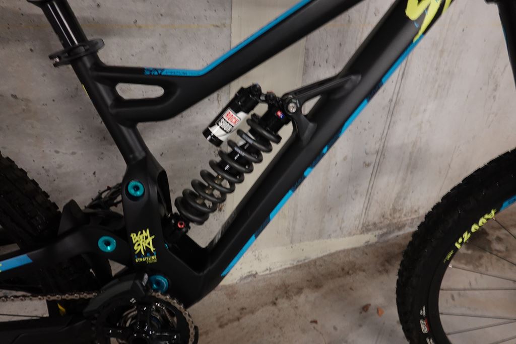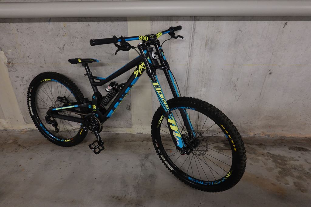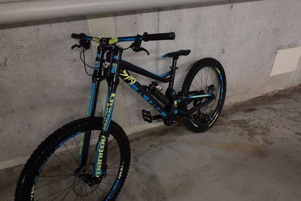 - Das Bike ist fast neuwertig und aus erster hand. Es wurde nur einige male im Park gefahren und stand dann leider nur rum. Besonderheit ist der Carbon Hinterbau. Die Bereifung wurde neu gemacht da die alten reifen nicht mehr gut sind. Rechnung ist auch noch vorhanden, bei interesse. Technische Daten: Rahmengrösse M Rahmen: 27.5" MTB, 6013 Aluminium Ultra Strong Rohrsatz, T4/T6, High Modulus Carbon Hinterbau, Progressive Link System, Flip Chip Geometry Fitting, einstellbare Kettenlinie, 3D-Forging, Federweg: 210 mm Gabel: Manitou Dorado Pro 27.5", 1 1/8", 200 mm, Luftfeder, IRT , Zugstufeneinstellung, Compression, 20 mm Achse Dämpfer: Rock Shox Vivid Coil R2C, Zugstufeneinstellung, Druckstufeneinstellung, Länge x Hub: 240x76 mm, Buchsen: 22x8 mm/16 mm Steuersatz: BGM sealed angular contact bearing, semi-integriert, ZS49/28.6/H8 | ZS49/30/K, ±1° HT angle adjust Schaltwerk: Sram RD GX1 DH, X-Horizon, 7-fach, medium cage Schalthebel: Sram SL GX-DH, 1x7-fach, Trigger-Shifter Bremsen: Magura MT5, hydraulische Scheibenbremse, Storm SL Rotor: 203/203 mm Kurbelsatz: Truvativ Descendant DH, 36t, X-SYNC, Länge: 165 mm Kettenführung: e*thirteen LG1, ISCG05, Stahl-Backplate, Bashguard, 32-36t Innenlager: Sram BB104,5, Press-Fit Lenker: Answer Pro Taper 810 DH, Riser Lenker, Kröpfung: 8°, Höhe: 12,7 mm, Breite: 810 mm Vorbau: Answer DH, Direct Mount, Al 7075, 4-bolt, 40-55 mm einstellbarer offset Sattelstütze: SDG I-Beam SP-751, 30.9 mm, Länge: 300 mm Sattel: SDG I-Fly Nabe: Vr/Hr Sun Ringle ADD 2.1, 27.5" Laufradsatz, Disc Kette: Sram CN PC-1051, 10-fach Kassette: Sram CS PG-720, 7-fach, 11-25t Speichen: Sun Ringle Felgen: Sun Ringle ADD 2.1, 27.5" Laufradsatz, Disc Bereifung: Vorne: Maxxis Minion DHF 27.5"x2,50 Hinten: Maxxis Minion DHRII 27.5"x2,40 Pedale: Reverse Escape Gewicht: ca. 17,2kg