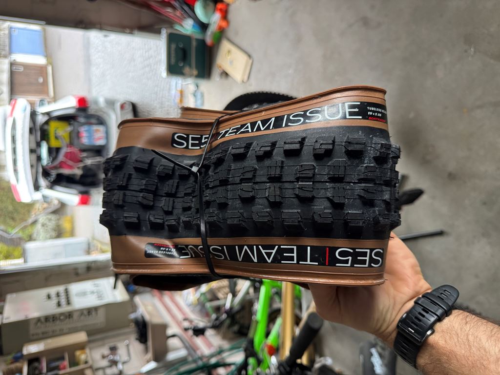 Reifen: Bontrager SE5 Team Issue, TLR, Core Strength-Flankenschutz, Aramidwulstkern, 120 TPI, 27.5 x 2.50 und 29x2.5