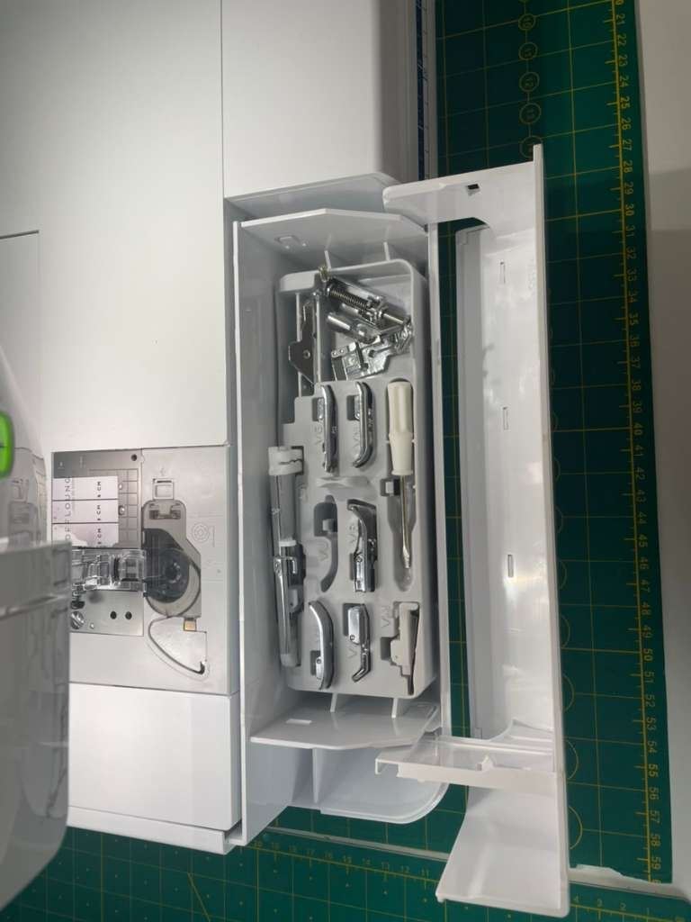 - Verkaufe gebrauchte Nähmaschine Brother Innov-is VQ 4 wie abgebildet. 473 programmierte Stiche 285 mm Durchgangsbreite ICAPS – der automatische Stoffsensor 14 Knopflochvarianten und 5 Schriften Bis zu 1.050 Stiche pro Minute Laserführunslinie elektronischer Obertransport Ultraschallsensor-Funktion Anschiebetisch Geradstichplatte mit Geradstichfuss Multifunktionsanlasser