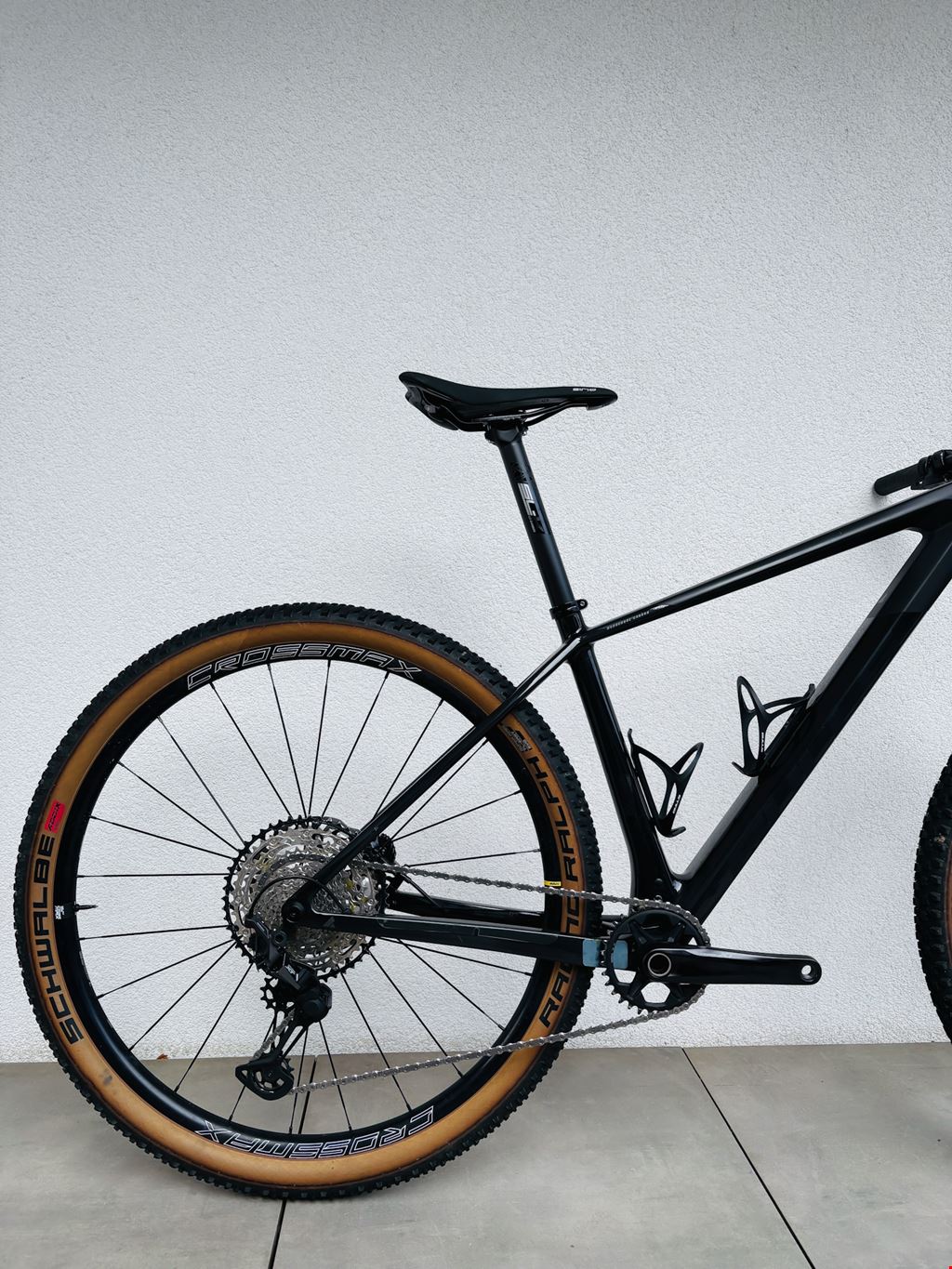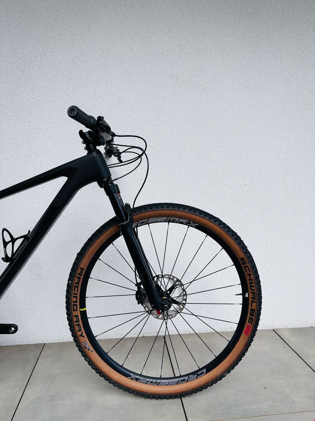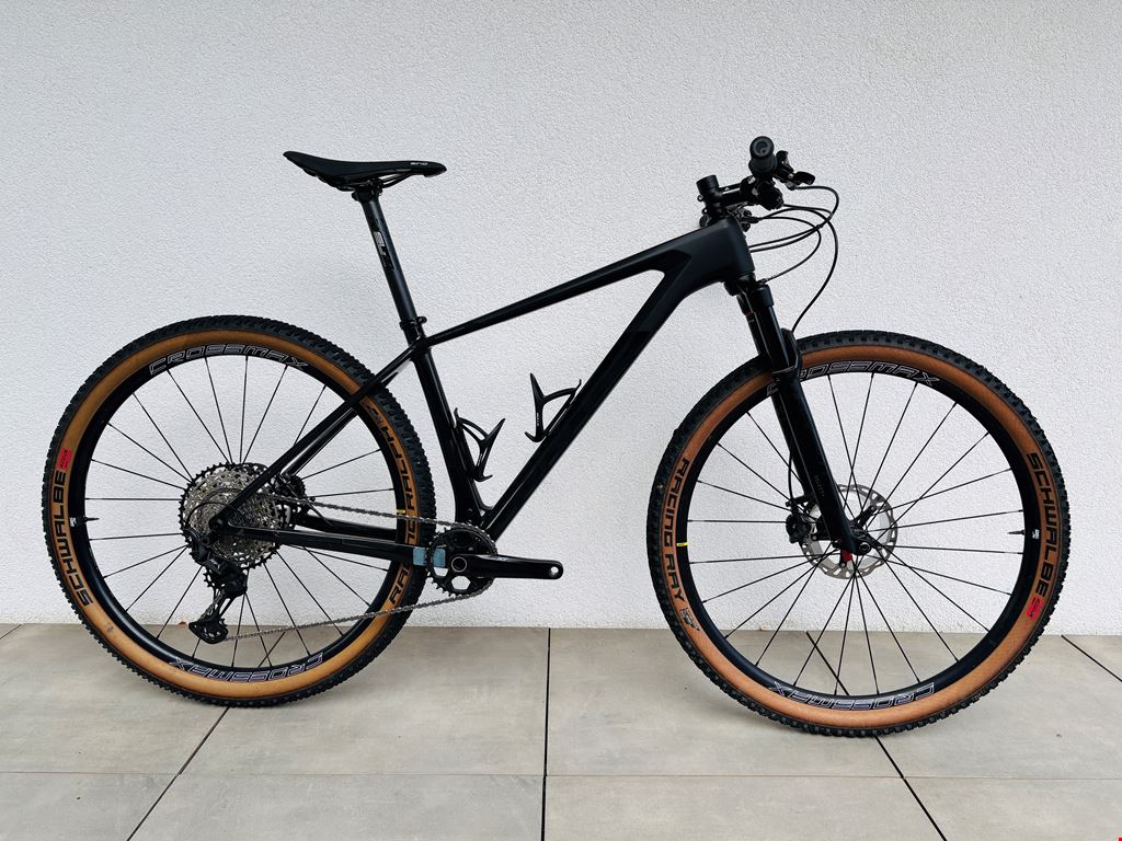 - SPEZIFIKATIONEN & HIGHLIGHTS Rahmen: Super lite carbon fibre monocoque (Nur 900g in Größe M). Gabel: RockShox SID SL Select+ (100 mm Federweg). Schaltung: Shimano Deore XT 12-Gang (mit SLX 10-51T Kassette). Bremsen: Shimano XT BR-M8100 Hydraulik-Disc (180mm Scheiben). Laufräder: MAVIC E-Crossmax 29" Centerlock. Reifen: Schwalbe Racing Ray / Racing Ralph Evo Super Race (57-622). Cockpit: Rumble Altimate 35 Flat Top Lenker & FSA Carbon Sattelstütze. Gewicht: Ultraleichte 10,3 kg (Zulässiges Gesamtgewicht 125 kg).