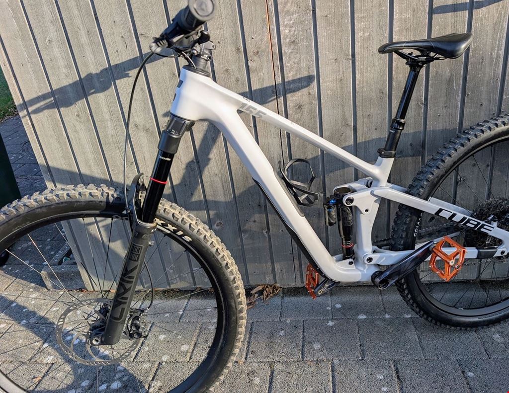 - Sehr gut erhaltenes Cube Stereo ONE55, ist frisch ab Service und wurde vom Junior gefahren. Verkauft wirds, da es zu klein, resp. der Junior zu gross ist für die S Grösse. Farbe ist Weiss/ Helles Grau, Cube nennt die Farbe Lightgrey. Das Bike hat weder Schäden oder grosse Gebrauchsspuren und ist in einem super Zustand. Ein Kratzer hats am Lenker, ist auf dem Bild sichtbar. Gabel: RockShox Lyrik Select+ mit 160mm Federweg Dämfer: Rockshox Super Deluxe Select+ Bremsen: Magura MT, 4 Kolben mit 203/180 Bremsscheiben. Felgen DTSwiss XM1700 Flaschenhalter ist dabei, Pedale grundsätzlich nicht, kann aber noch verhandelt werden ;-) Gibt ein Fach am Rahmen für Werkzeug, etc. Bike kann in Landquart besichtigt und probe gefahren werden. Grösse: Ich schätzen 160-170 wär ideal. zB bei https://www.bike24.com/p2960113.html unter 'find.my frame size' gäbs auch einen Grössenrechner