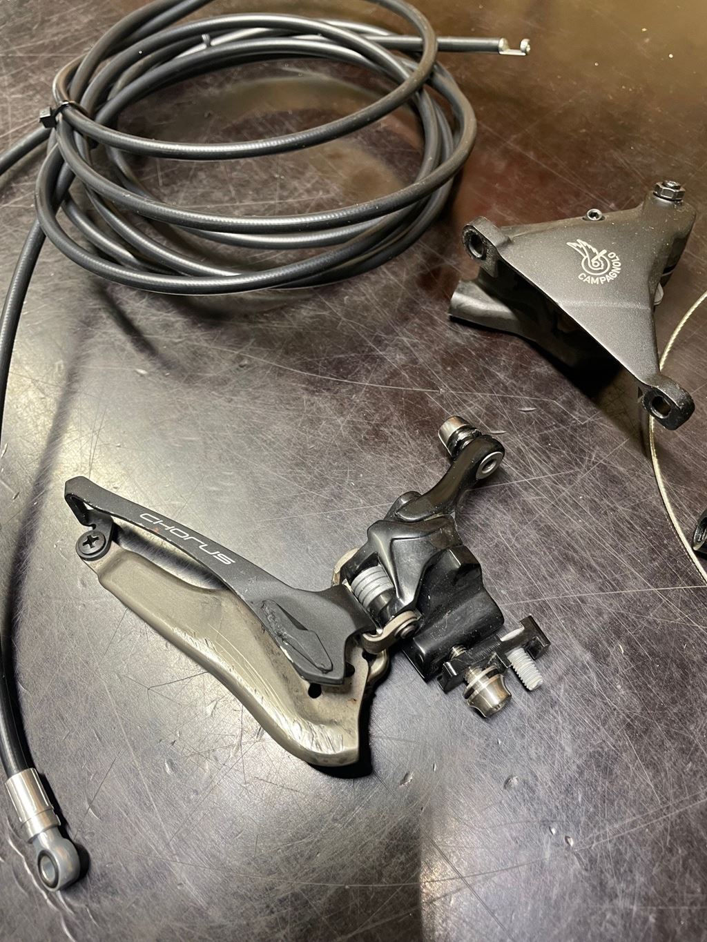 - Campagnolo Chorus 12-Gang Gruppe für Scheibenbremse (ohne Kurbel, ohne Kette, wie abgebildet) zu verkaufen. Gerbraucht aber guter Zustand. Kassette 11-34.