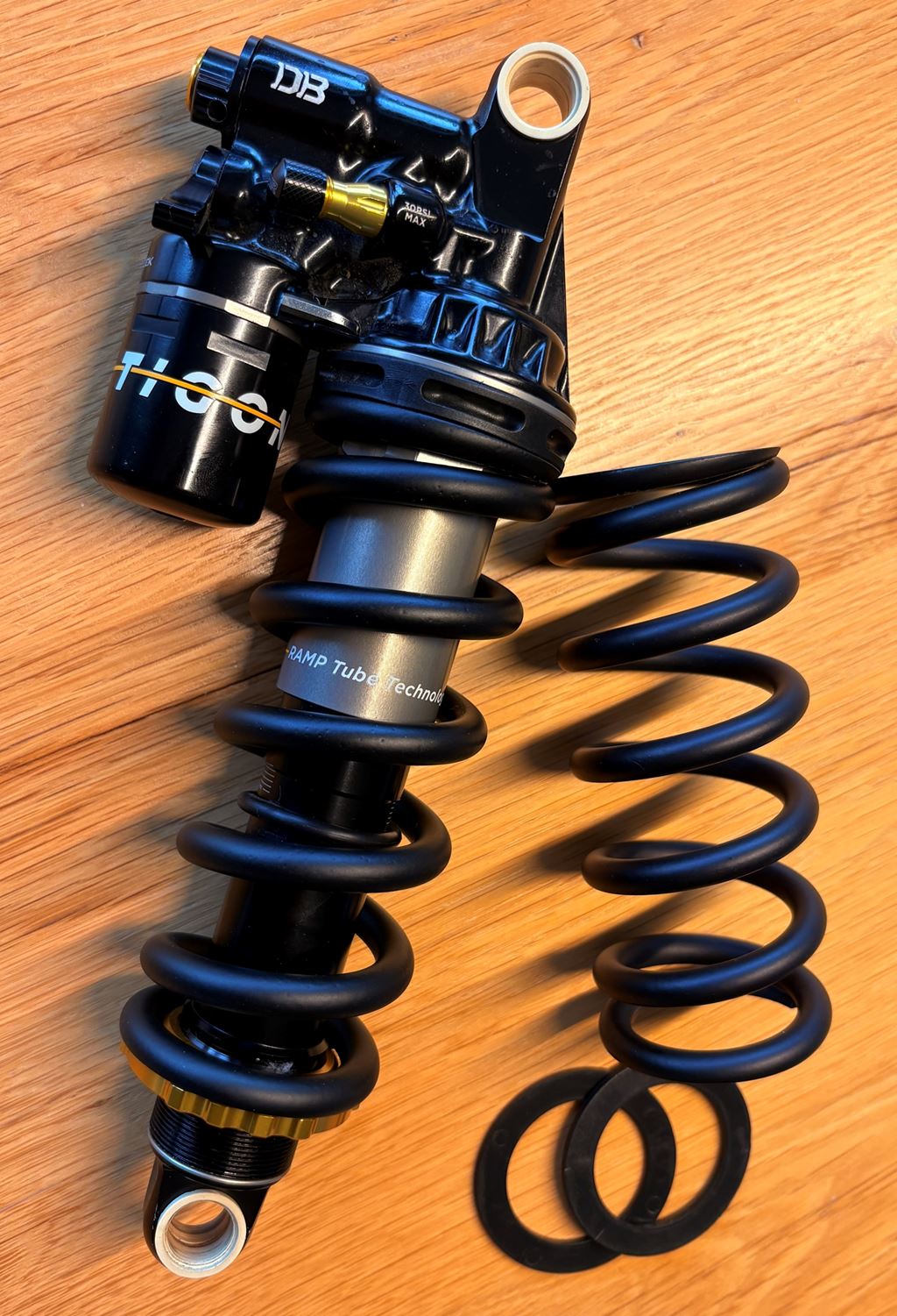 - Der Dämpfer ist wenig benutzt worden (Juli bis Oktober 2024) und ist in Top-Zustand. Einbaulänge 230 mm. Der Hub ist 65 mm. Dieser kann selbst, ohne grossen Aufwand (kein Service dafür erforderlich), auf 62.5 oder 60 mm verkürzt werden. Die Federn 350 und 450 sind im Angebot enthalten und werden mitgeliefert (gemäss Fotos). Das Konzept mit der Air-Progression ist gut spürbar und verleiht dem Bike damit auch mit der Coil viel Pop und Gegenhalt im mittleren Federweg-Bereich, was mega Spass macht! Neupreis: 959.- Dämpfer, 160.- Federn = 1119.- Der Dämpfer war in meinem Canyon Strive im Einsatz, welches ich mit dem Originaldämpfer verkauft habe, deshalb ist dieser Dämpfer nun überzählig und wird verkauft. Leider passt er nicht in mein neues Bike von der Einbaulänge her - sonst hätte ich ihn gerne weiterhin gefahren. Bei Fragen - fragen.
