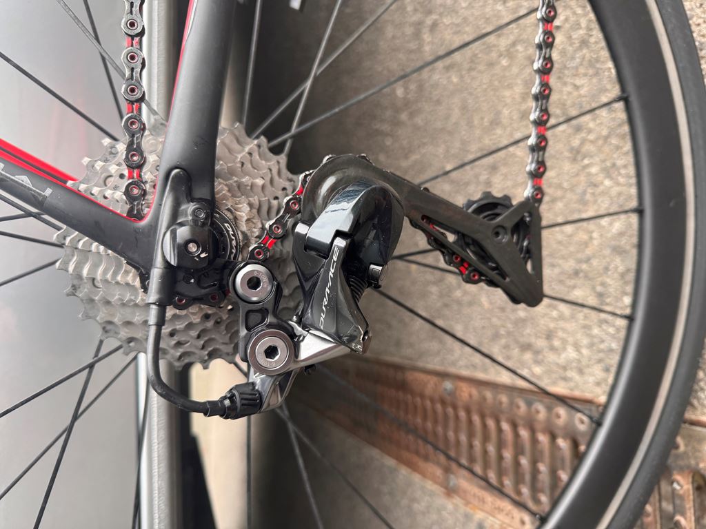 - 6.86 kg inkl Mavic CarbonPedale, Tune Flaschenhalter und Sensoren/Docking für Radcomputer. Sehr schönes Cannondale in 58cm, Dura Ace, Tune TSR 35 LRS (Mig/Mag). Fizik Vorbau/Lenker. Die teuerste KMC Kette wurde ebenfalls montiert, da farblich passend. Das Rad lief keine 2000km, der LR Satz keine 1500. Gebrauchsspuren. Bestens gepflegt. Pedale optional. Probefahrt vor Ort möglich.