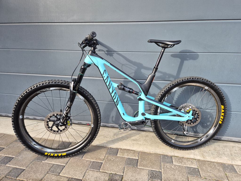 - Verkaufe mein gebrauchtes Canyon Mountainbike, ein tolles Fully in auffälligem Türkis. Rahmen sowie Felgen sind aus Carbon. Die Reifengrösse beträgt 27.5 Zoll und der Rahmen hat Grösse S. Der Rahmen samt Hinterbau ist Nagelneu (Garantie Canyon). Treetlager ebenfalls Nagelneu. Das Bike ist mit einer Sram Eagle XO Funkschaltung 1 x 12 ausgestattet. Vor zwei Jahren wurden neue Bremsen Magura MT7 mit Spezialbremsscheiben montiert. Das Bike wiegt inkl. Flatpedalen 13.5 kg und hat einen Federweg von 160 mm vorne und 150 mm hinten. Velo ist Unisex und ideal für jedes Alter. Es hat mir stets treue Dienste geleistet und ist bereit für neue Abenteuer. Perfekt für die Trails im kommenden Sommer! Gebrauchsspuren an Gabel, Felgen und Lenker vorhanden. Greif jetzt zu!