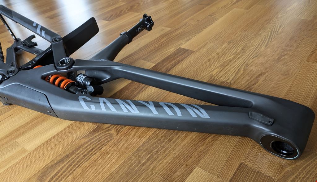 - Gebrauchter Canyon Sender CFR Rahmen mit 9 Fahrtagen (keine Rennen) und leichten Gebrauchsspuren. Der Rahmen wurde mir auf Garantie ersetzt, da die Steuersatz-Schale im Rahmen ein wenig Spiel hatte. Die Lagerschale wurde aber von Canyon nun bombenfest verleimt und ist jetzt fix auf der +8mm Stellung -> 493mm Reach. Ich habe den Rahmen komplett auseinander genommen, alles akribisch geputzt und gefettet und wieder zusammengesetzt. Ein Lagertausch war nicht nötig. Lieber neu, mit Reach-Verstellung und Garantie? Schau meine anderen Markteinträge an! Rahmen kommt mit Fox DHX 2 Performance Elite und SLS 450er Feder. Der Dämpfer wurde auch 9 Tage gefahren. Weiter: Sattelstütze und Achse. Grösse: L Farbe: schwarz Radgrösse: 29" oder Mullet Einstellmöglichkeiten: Kettenstrebe-Länge, Progression (Reach kann nicht mehr verstellt werden) Kann in Zürich abgeholt oder per Sperrgut verschickt werden.