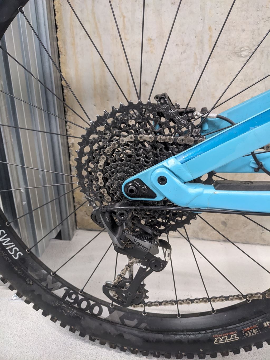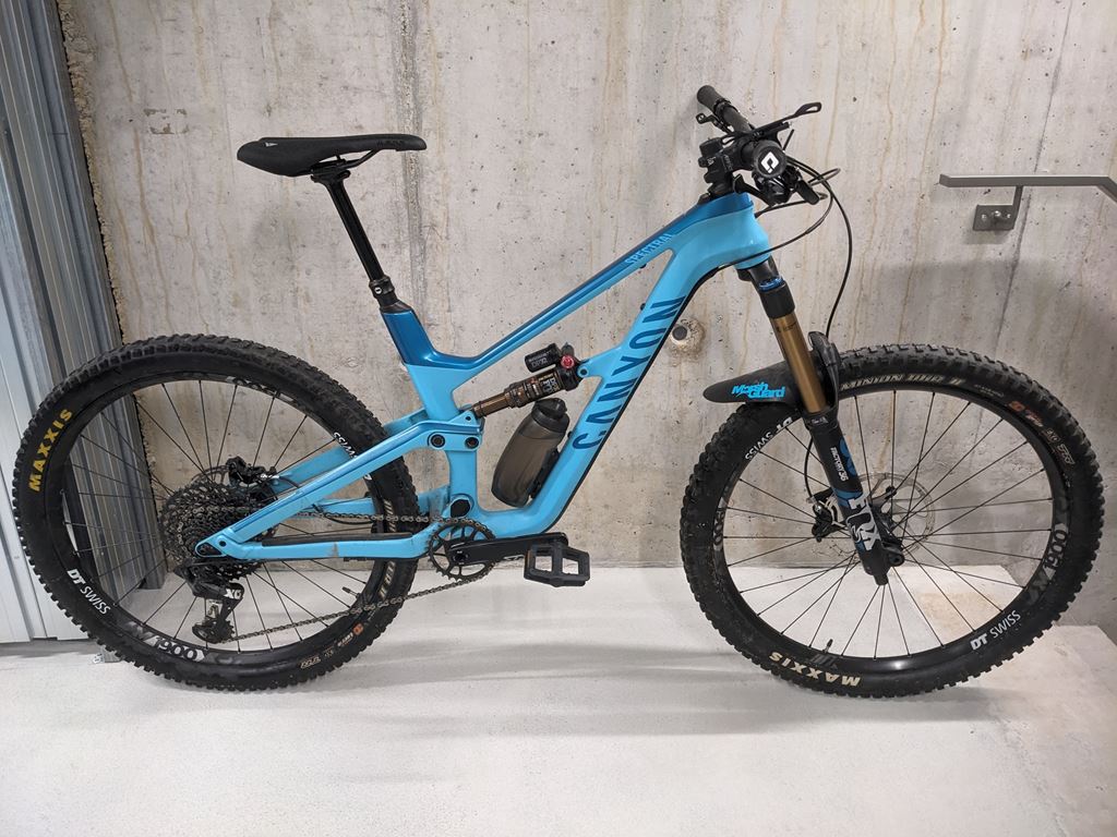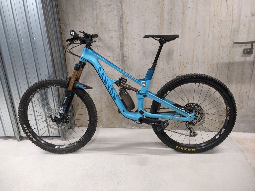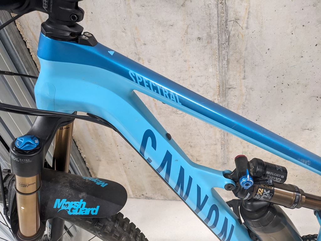 - Ich verkaufe hier ein Canyon Mountainbike (Damenausführung WMN) in der Rahmengröße M / Medium. Es gibt jedoch keinen Grund, warum nicht auch Männer mit diesem schönen Fahrrad fahren können. Wenig gefahren und daher oft im Keller gelassen, das ist auch der Grund für den Verkauf. Es weist lediglich normale, für den Gebrauch übliche Gebrauchsspuren auf. Das Rad wurde sowohl an der Gabel als auch am Dämpfer durch einen Tausch der Komponenten massivst aufgewertet. Die Komponenten alleine haben über 700 Euro gekostet. Modell: Canyon Spectral WMN CF 7.0 Carbon/Aluminium Größe: Damen M Farbe: Türkis aquamarin Federgabel FOX FACTORY 36 150 mm Dämpfer FOX FLOAT DPX2 Performance 140 mm Schaltung SRAM GX Eagle Sattelstütze Iridium Dropper 1X Remote Vorbau RaceFace Aeffect 50 mm Lenker RaceFace Aeffect 740 mm Laufradsatz DT Swiss M 1900 Spline Reifen MAXXIS Minion DHRII/Forekaster 27,5″ x 2,4″/2,35″ Tubeless aufgebaut Das Fahrrad kann im Umkreis von Zürich auch durch mich gebracht werden, allerdings habe ich keinen Versandkarton
