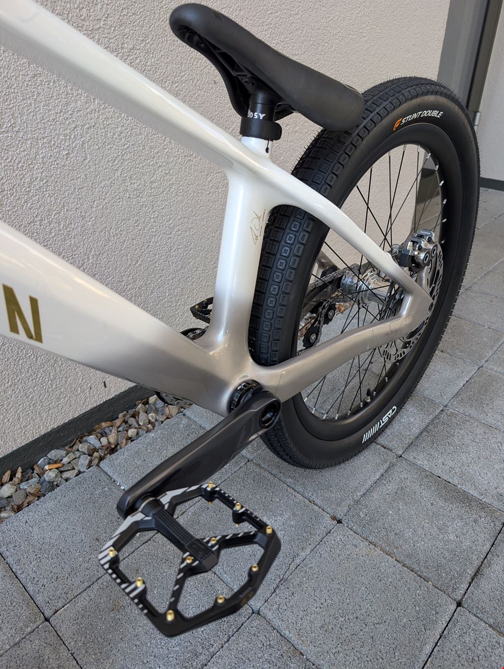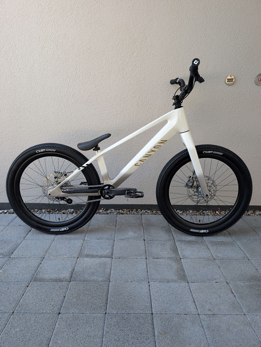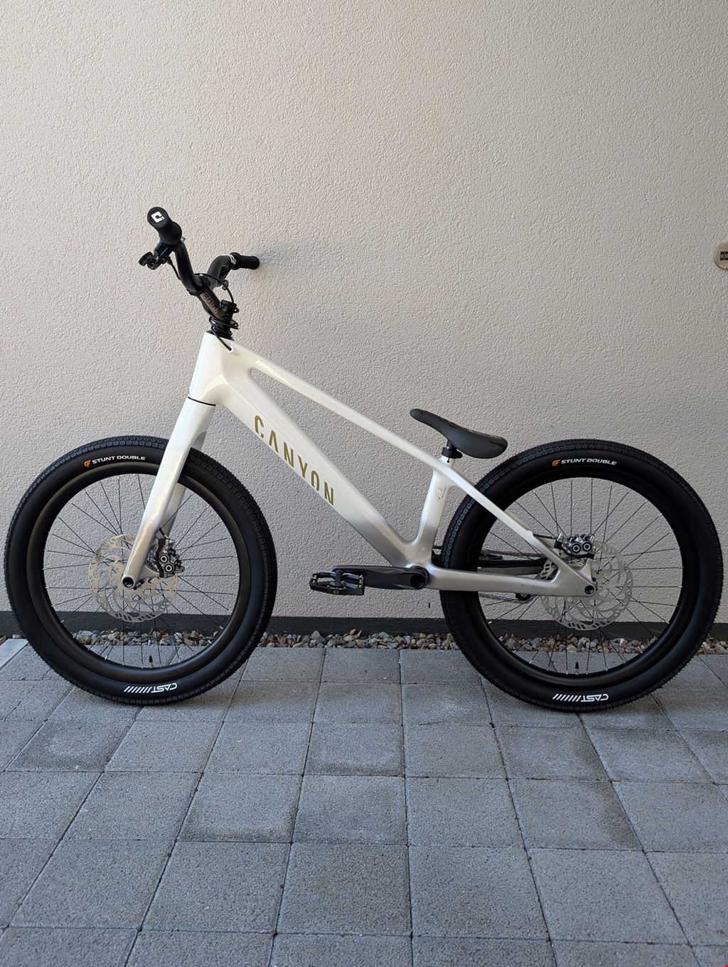 - I'm selling my Canyon Street Trials Bike in Excellent Condition (ridden during approx. 9 months, almost only on weekends) with some New Parts and Upgrades from the original specifications (wheels, titanium bolts, tires, etc.). Reason for sale: Switch back to Inspired Bicycles, which better suits my riding preferences. Brand New Spare Parts included with the bike : DT Swiss TR1700 Front Wheel, SQlab 6OX Trial Fabio Wibmer Saddle, Cankbrothers Fabio Wibmer Stamp 7 spare gold Pin Kit, Canyon Chain Tensioner, Magura Caliper Tuning Kit, KMC Z1eHX Narrow Spare Links). Under warranty until November 7, 2026. Note: To be picked up on site, or I can come closer to your address if thats more convenient for you (no shipping available). Specifications: - Frame : Canyon Stitched Trial, Carbon (CF) Guardian Angel Color (Fabio Wibmer Signature Color), Axle Dimension: 12x148mm, - Fork : Canyon FK0097-01, Carbon (CF), Steer Tube Diameter: 1-1/8" - 1,5", Axle Dimension: 15x110mm - Front Hub : Industry Nine Hydra MTN 6B Front 15x110mm Boost, 32H, Silver - Rear Hub : Industry Nine Hydra MTN, 6B Rear 12x148mm Boost, 32H, HG Body, Silver (upgraded with dual springs) - Chain Tensioner (NEW) :Inspired Team Sprung, Short (16T), Black - Spokes : Sapim Race J-Bend, Black (with Sapim Alloy Polyax Nipples 12mm, Silver) - Rims : Light Bicycle Carbon AM431 UD Matte 32H, 31mm Inner Width, 38mm Outer Width, Tubeless Ready - Tyres (NEW) : CAST Stunt Double 24 x 2.4", Black - Tubes (NEW) : Maxxis Welter Weight Presta 24x1.50-2.50", 40/63-507, valve 48mm - Brake Set : Magura MT7 HC3 203mm Disc, Black, Better Bolts Magura Titanium Kit - Brake Pads (NEW) : Magura 8.P Performance MT7/MT5 - Rotors (NEW) :Magura MDR-C, 6-Bolts, 203mm - Brake Adaptors : Magura PM, Black, Better Bolts Titanium Bolts - Cranks (NEW): SRAM GX Eagle DUB Wide 55mm, Boost 148mm, 170mm Cranks, Lunar Grey - Front Sprocket & Bashring (NEW) : Inspired 22T Descendant Integrated V2, Satin Black - Chain (NEW) : KMC Z1eHX-Narrow - Chainstay Protection : RideWrap Chainstay Armor, Black - Rear Sprocket (NEW) :Box One Alloy Single Speed Cog, 16T, Silver - Pedals (NEW) Crankbrothers Samp 7 Large, Fabio Wibmer Signature Edition, Black, White & Gold - Bottom Bracket : SRAM DUB 110 BSA 73mm - Saddle : SQlab 6OX Trial Saddle - Limited Team Edition, Black - Seatpost (NEW) : Shim 27.2mm -> 25.4mm, Black / Odyssey Tripod (uncut) - Seat Clamp : Canyon Clamp SL, 31.8mm, Black - Headset : ACROS Integrated 1-1/8" Upper, 1.5" Lower, Black - Stem : SQlab 8OX Trial Stem 90mm - Limited Team Edition, Black, Better Bolts Titanium Bolts - Grips : ODI Longneck V2.1 Lock-On, Black, Better Bolts Titanium Bolts - Handlebars : SQlab 3OX Trial 730mm - Limited Team Edition, Black Weight : ~ 10 kg (with specifications listed above)