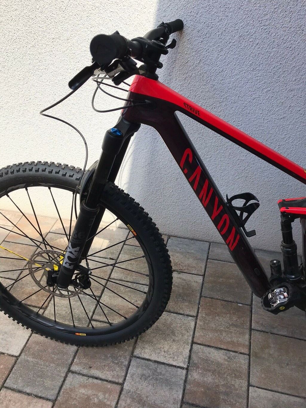 - Verkaufe ein nur zweimal gefahrenes Canyon Strive CF 5.0 29er Mountainbike. Ich habe dieses Jahr im Frühjahr gekauft, allerdings ist es für meinen Einsatzzweck doch etwas überdimensioniert. Minimale Gebrauchsspuren sind vorhanden, allerdings keine größeren Kratzer oder Beschädigungen, der Zustand ist wie neu. Größe: L Rahmen: Canyon Strive CF Carbon mit Shapeshifter 2.0 Technologie Gabel: Fox Rhythm 36 Dämpfer: Fox DPX2 3-POS Sram NX Eagle Schaltung Truvativ Descendant Kurbel Sram Guide R Bremsen Canyon G5 Vorbau und Lenker (nachgerüstet) Iridium Dropper Sattelstütze SDG Fly Sattel Entgegen der Bilder wird das Rad NICHT mit den Mavic Deemax Laufrädern sondern mit dem Original Sun Ringle Düroc Laufradsatz mit Maxxis Minion DHR II Bereifung verkauft. Internationaler Versand!!!