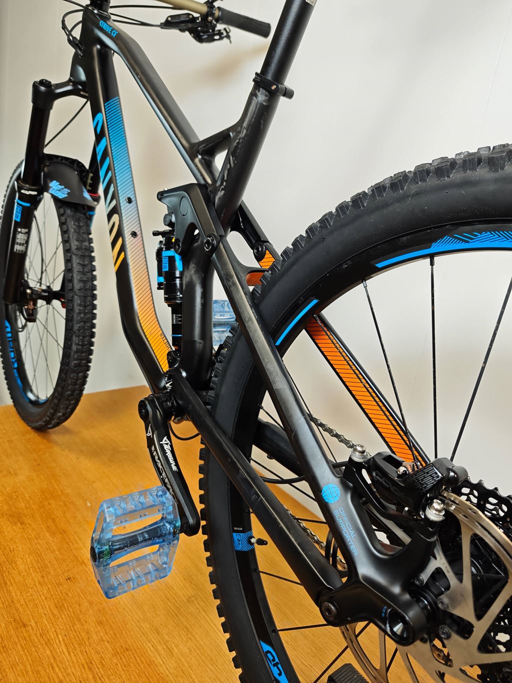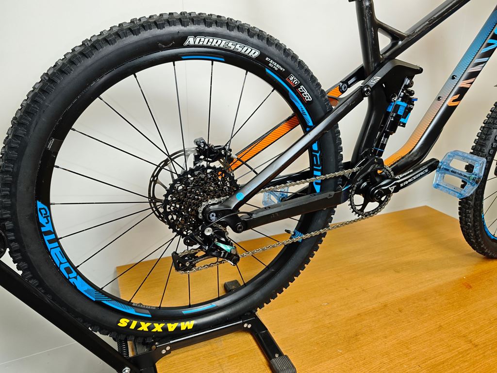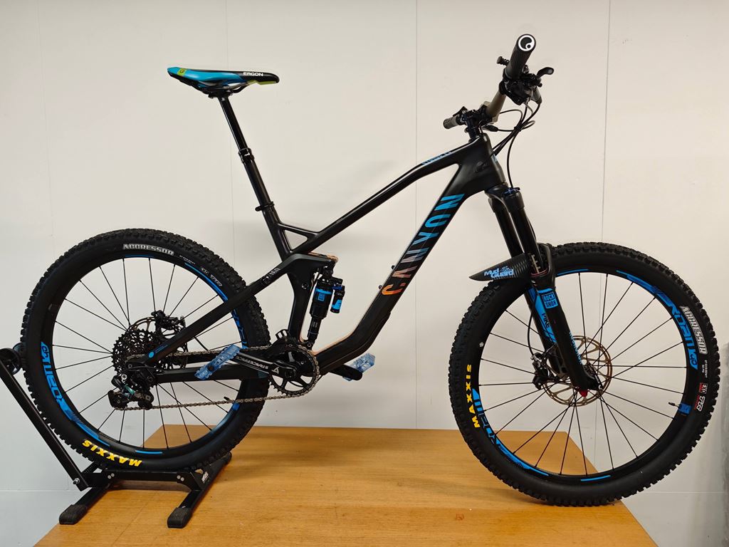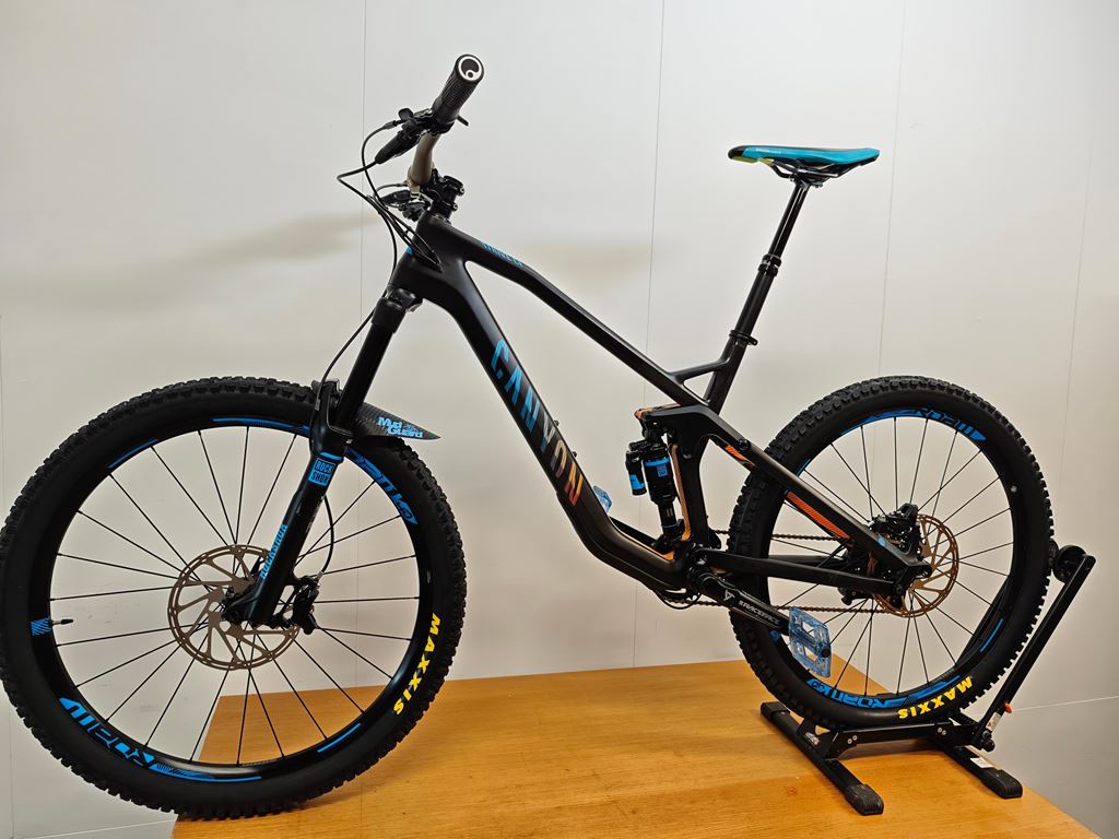 - Canyon Strive cf8.0 Race Das Bike war mein Winterprojekt (Hobby, Spass und Zeitvertreib) und ist jetzt nach vielen Stunden und vielen Neuteilen bereit um geritten zu werden. Es ist ein Canyon Strive CF8.0 Race (160 cm Federweg), es wurde gemäss Vorbesitzer (Erstbesitzer) nur verwendet um ab und zu ins Dorf zu fahren. Und so sieht es auch aus. Wenige Spuren sind vorhanden, aber eher durch die Lagerung als Verwendung entstanden. Die Kassette ist noch die erste und die hat beinahe keine Abnützungsspuren. Die Schutzfolie auf dem Schaltwerk sowie beim Kettenblatt ist immer noch montiert. Ich habe das Bike komplett demontiert und alle Lager vorsichtig geöffnet und frisch geschmiert. Dabei natürlich alle Teile kontrolliert und beim Zusammenbau alle Nm eingehalten und akribisch auf die saubere Montage geachtet. Neu verbaut wurde: Komplette Bremse hinten und vorne auf die Sram Code RSC (neu) umgebaut. Die Bremsscheiben sind gebraucht aber noch gut, habe sie lediglich aus Kostengründen nicht ersetzt. (Die Klötze sind noch nicht eingebremst, kann also noch gut ersetzt werden). Neuer Shape Shifter für die Fahrwerkverstellung (Von Privatperson ein Garantie-Ersatz aber nie verbaut). Dämpfer frisch ab Service von Suspensioncenter Neue Griffe, neue Reifen, neuer MudGuard, Sattelstütze entlüftet und neu befüllt. Allgemeine Infos: - Rahmengrösse M - Gewicht fahrbereit (so wie auf dem Fotos) leichte 13.9 Kg - Reifen 27.5’’ x 2.5 Maxxis - Rockshox Reverb Sattelstütze hydraulisch - Bremse Code Sram RSC vorne 200, hinten 200 - Dämpfer Rockshox Monarch plus (Hinterbau 160 cm Federweg) - Gabel Rockshox Pike 160 cm Federweg - Schaltung XO 1x11 fach - RaceFace Kurbel - Renthal Fatbar Lenker Das Bike kann gerne besichtigt werden. Ich habe noch ein weiteres Bike in der Grösse L zum Verkauf (wenn nicht bereits verkauft). Meldet euch über Traildevils oder auch gerne direkt per Wathsapp oder Telefon.