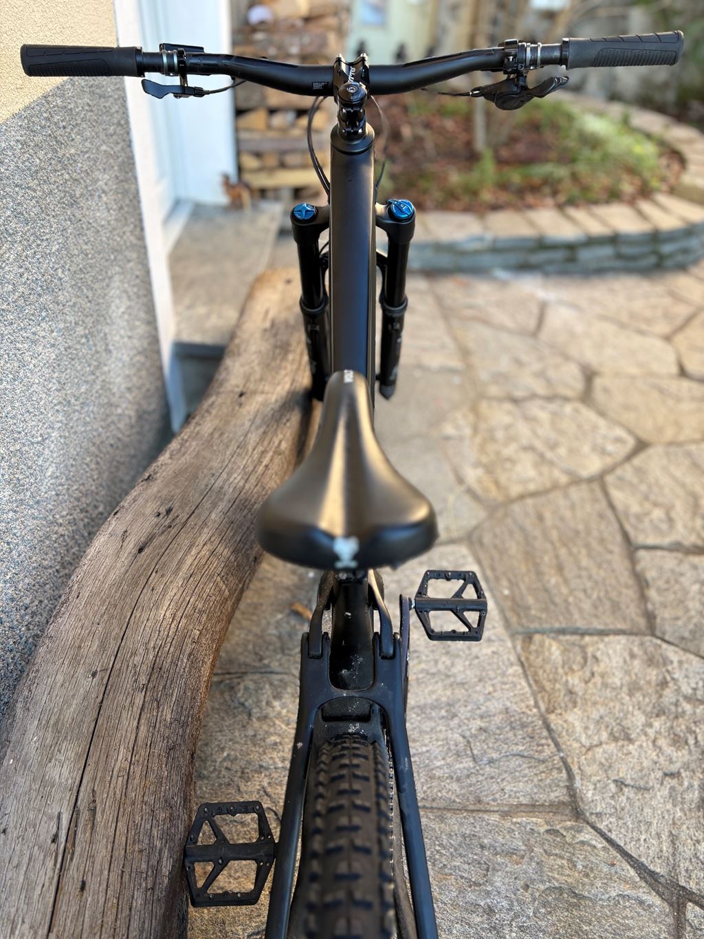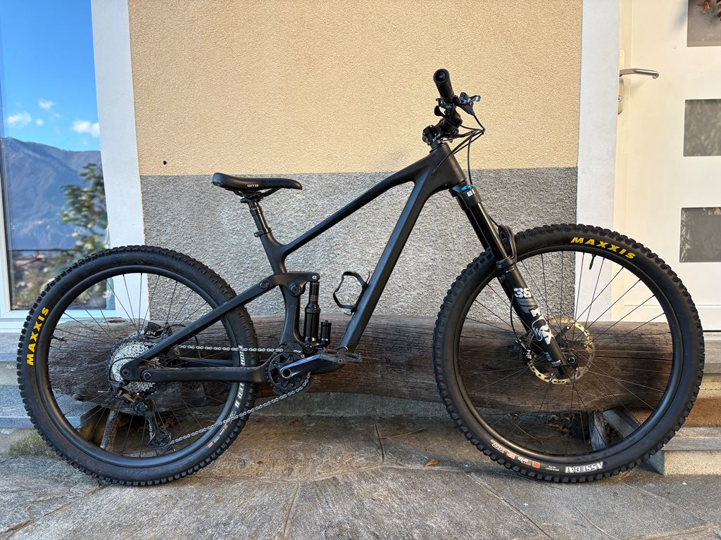 - Die Basis ist ein Carbonda FM1002 Rahmen in Grösse M in Mullet montiert, Geometrie: Head angle: 63.6° Seat angle (off): 77° Reach: 457mm Chainstay: 440 mm BB height: 342 mm Wheelbase: 1239 mm NEUE Komponente: - XT Gruppe 30 x 10-45 (oder 34 x 10-51 wenn gewünscht) - Fox 36 performance 160mm Federgabel - Radsatz mit carbon-Felgen (30mm intern) und Novatec sb791/sb792 Naben (oder DT Swiss EX511 + DT Swiss 350 wenn gewünscht) Luftdämpfer: Rock Shot super deluxe Bremsen: Pro E4 mit Shimano XT 203mm Scheiben Cockpit: Alu 760x50mm 150mm-teleskopische Sattelstütze