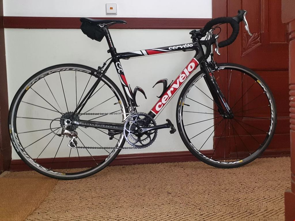 - Cervelo R3 Rennrad - CSC Design Rahmenhöhe: 55 cm Schaltgruppe: Shimano DURA ACE Bremsen: Campagnolo: Record Skeleton Compactkurbel Spécialités (Frankreich) Laufräder: Mavic Krysium Equipe 5 2 Flaschenhalter Gewicht: unter 7 kg Das Rad ist mit den ehemals verbauten Carbon Laufrädern mit 6,46 kg gewogen worden. Aufgrund der besseren Stabilität habe ich mit für das Training mit einem Magic Ksyrium Equipe 5 Laufradsatz entschieden. Der Laufradsatz hat ca. 4 Jahre mit 3000 km Laufleistung "auf dem Buckel".