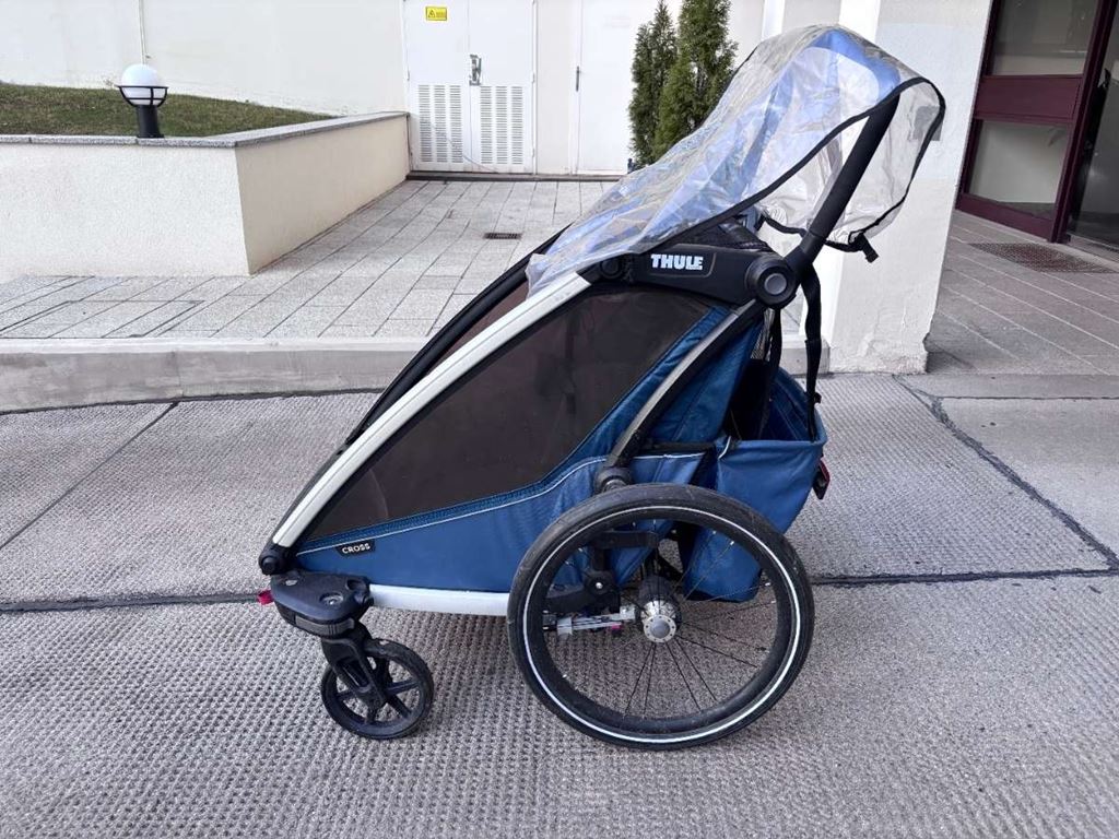 - Thule Chariot Cross 2 zu verkaufen. Gebraucht, guter Zustand. 7 Jahre alt. War immer in Garage untergestellt. Kleines Loch beim Moskitoschutz, siehe Bild.