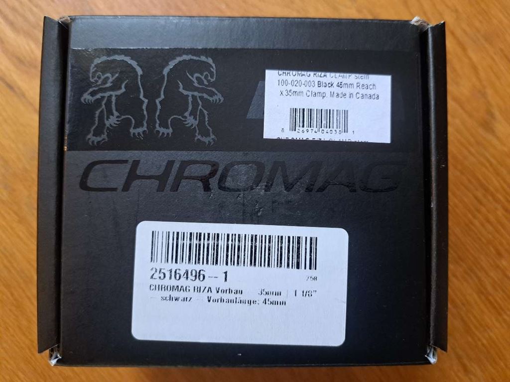 - CHROMAG RIZA Vorbau - 35mm | 1 1/8" - schwarz Der RIZA wird in Kanada aus hochwertigem Aluminium CNC-gefräst. Er profitiert aus der 20 jährigen Erfahrung von Chromag in der Herstellung von Vorbauten auf höchstem Niveau. Eine Besonderheit ist die leichte Fase an der Außenkante des Klemmbereichs. Dadurch soll die Belastung am Lenker verringert werden, wenn sich dieser im harten Einsatz biegt. Der hohe Detailgrad des Vorbaus sowie das maschinelle entgraten erfordern eine hohe Maschinenlaufzeit, doch der Aufwand lohnt sich. Das Ergebnis ist eines der besten Produkte die Chromag je hergestellt hat. Außerdem sieht der Vorbau wirklich verdammt gut aus. Technische Details des Chromag RIZA Einsatzbereich: MTB Material: 6061 Aluminium (CNC-gefräst) Klemmdurchmesser Gabelschaft: 1 1/8" Klemmdurchmesser Lenker: 35 mm Klemmhöhe: 38 mm Rise: 0° Zustand: NEU Länge: 45mm Made in Canada Fase im Klemmbereich zur Entlastung des Lenkers Gewicht (31,8mm/38mm): ca. 194 g (Herstellerangabe)
