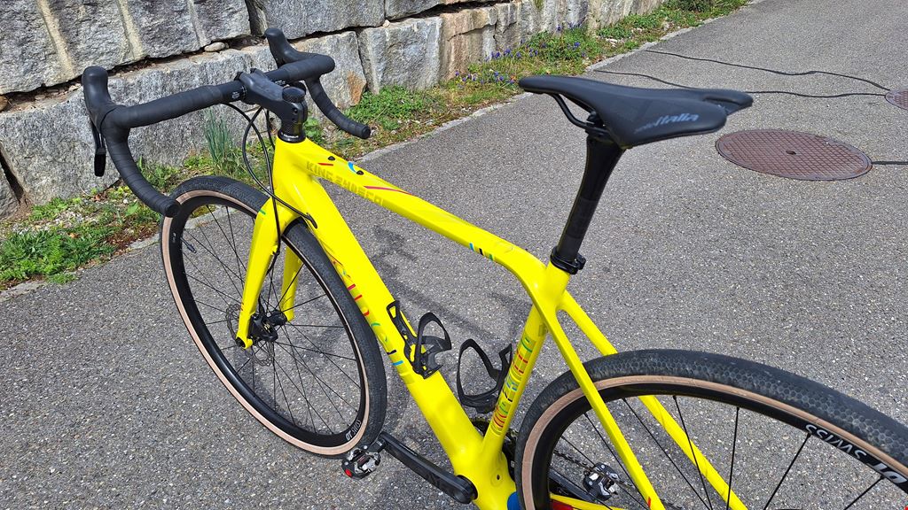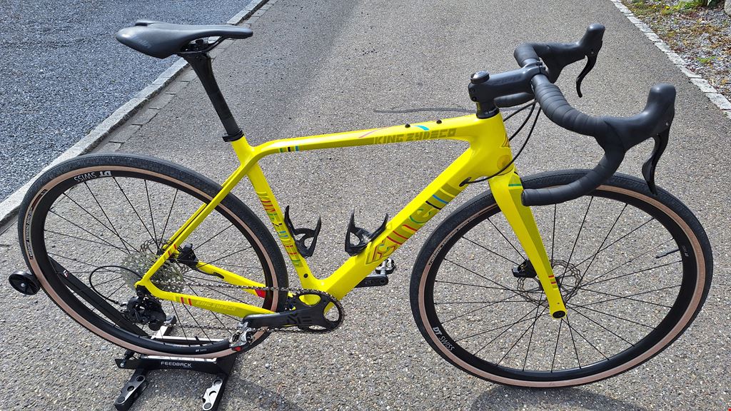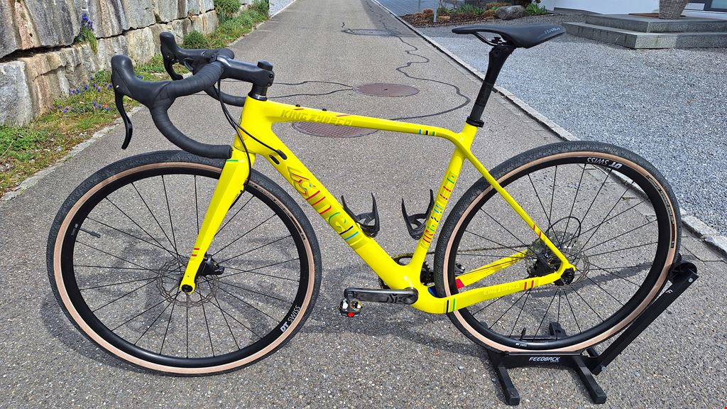 - Cinelli King Zydeco Gravel Racer Rahmen: Cinelli King Zydeco, Grösse M (168 - 178cm), Gelb, Jahrgang 2023 Schaltung + Antrieb: Campagnolo Ekar 13 fach, Kurbel 172.5, GT-Kassette 9-42 N3W, Kette 13 fach Bremsen: Campagnolo Ekar Bremsanlage, Campagnolo Scheiben v160mm, h140 Lenker: 3T Superergo Pro Lenker - 31.8 - matt schwarz, 420mm Vorbau: Zipp SL Speed 31,8 Vorbau - 6° - schwarz matt, 110mm Sattelstütze: Deda RS Carbon Sattelstütze - 0mm Setback - polish on black (POB), 27.2 Sattel: Selle Italia SLR Boost TI Grösse: L1, Masse: 145 x 248 mm Pedale: LOOK X-Track Race Carbon Pedal - schwarz Flaschenhalter: 2x Elite Rocko Carbon Laufradsatz: DT Swiss CRC 1400 SPLINE Disc Center Lock 24 Reifen: Vittoria Terreno Zero TR 40-622, mit Schlauch Zustand: Laufleistung 4700km, keine Stürze, top gepflegt