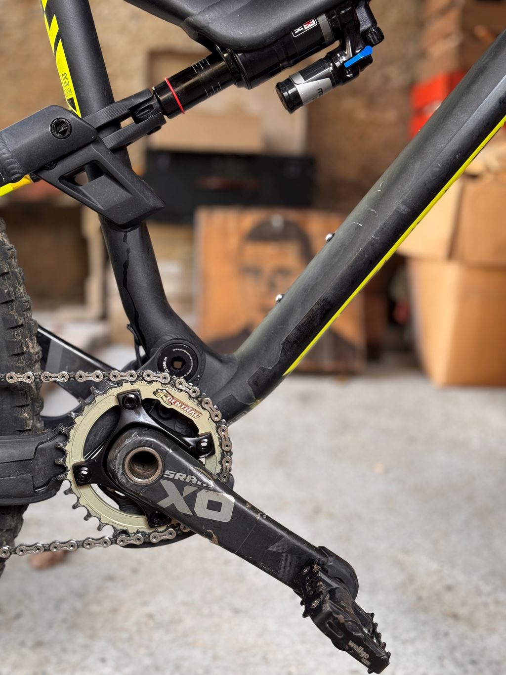 - Commencal Meta AM V4 black anodized worldcup 2015 Rahmengrösse M Geliebtes und deshalb gebrauchtes Meta, mit Gebrauchspuren ;) Ich bin das Bike bereits seit 3 Jahren nicht mehr gefahren, da ich umgestiegen bin. Es fährt, kann aber so nicht direkt auf Trails gehen: Es benötigt einen Service, inkl Bremsen checkup und bleed, und auch die Kassette & Kette sollte gewechselt werden. Nach einem Service ist das Bike für Anfänger:innen, die erstmal ausprobieren wollen, toll. Über die Jahre hatte ich einige Parts ersetzt. _ Bremsen Shimnao XT (Bremse rechts wurde mal ersetzt deshalb unterschiedliche Jahrgang/Farbe) _ SRAM X01 - 11 , Shifter, Kassette (muss ersetzt werden) und Schalterk _ Federweg hinten (RockShox Monach Plus Dämpfer) und vorne 150mm (RockShox Pike, nachgerüstet) (ursprünglich 160 vorne) _ 27.5 Laufräder, Commencal Ride Alpha _ Sattelstütze Oneup, nachgerüstet _ OneUp Carbon Lenker 35D 800L (inkl Stem) nachgerüstet _ Kurbel Renthal _ Wechsler SRAM X1 - 11 speed _ Kassette SRAM XG 1195 10-42t _ Reifen Maxxis Minion DHF 27.5 x 2.4 _ Pedale: KEINE (die Pedale auf dem Foto habe ich nur für eine Testrunde montiert) Ausprobieren und Abholgung nach Absprache Nähe Basel. Barzahlung oder Twint. Privatverkauf ohne Garantie.
